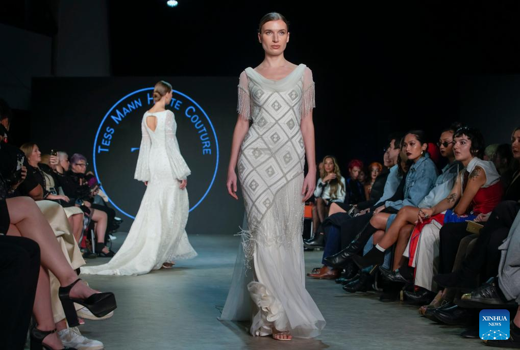 Models present creations by Tess Mann Haute Couture during the Spring Summer 2024 Collections Fashion Show at Vancouver Fashion Week in Vancouver, Canada, on Oct. 21, 2023. (Photo by Liang Sen/Xinhua)