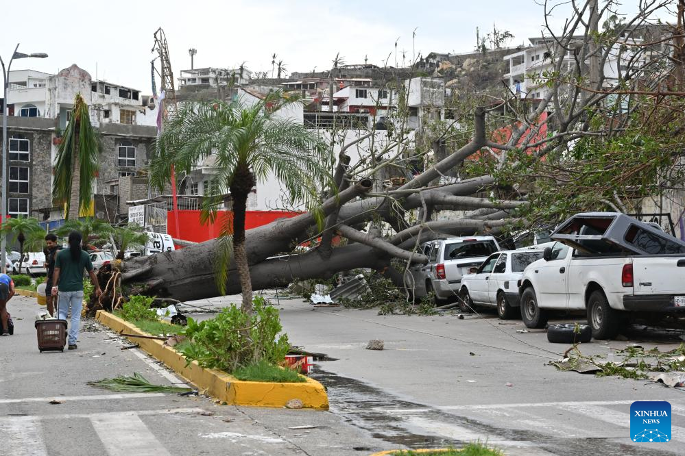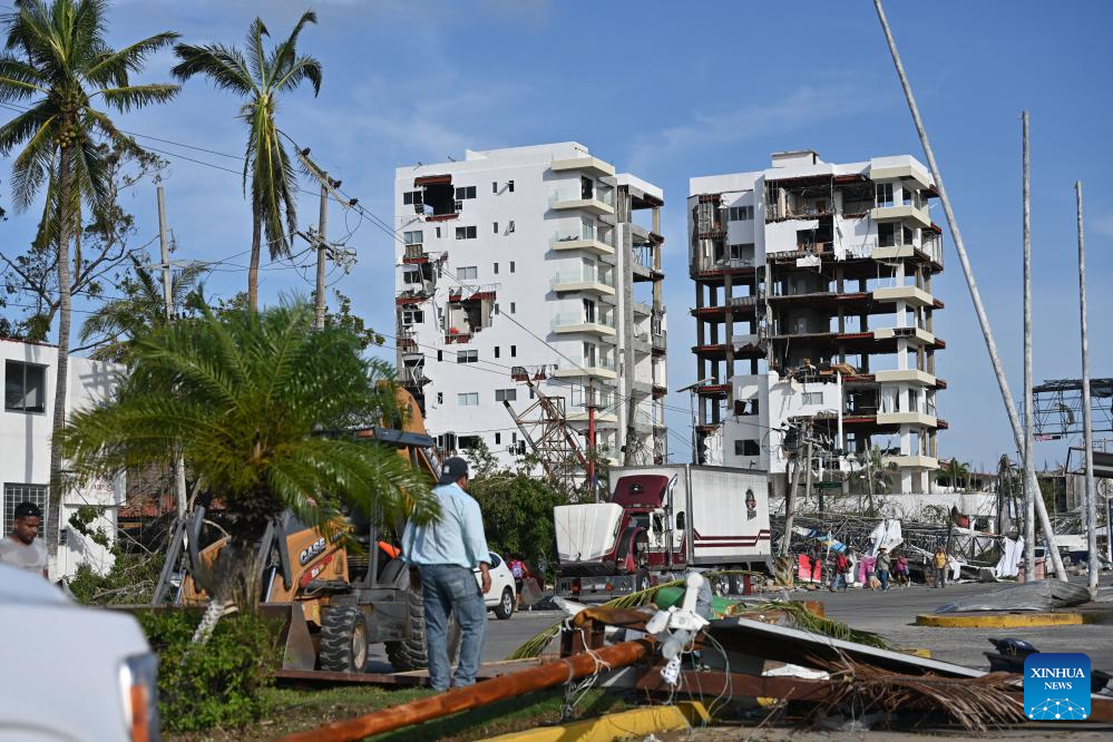 This photo taken on Oct. 25, 2023 shows an area hit by Hurricane Otis in Acapulco, state of Guerrero, Mexico. The death toll from Hurricane Otis has risen to 39 in the southern Mexican state of Guerrero, with 10 people reported missing, the Mexican government said Saturday.(Photo by Jesus Espinosa/Xinhua)