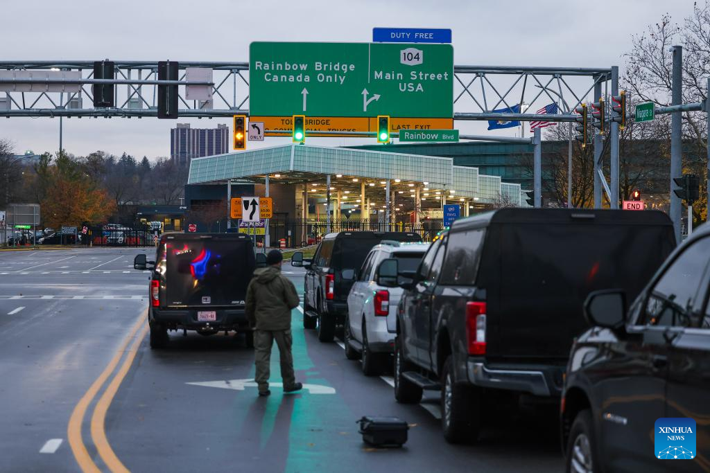 A U.S. border patrol officer is on duty at the Rainbow Bridge U.S. border crossing with Canada in Niagara Falls, New York State, the United States, Nov. 22, 2023. There is no indication of terrorist involvement in a vehicle explosion that claimed two lives at a border crossing between the United States and Canada in Niagara Falls on Wednesday, said New York State Governor Kathy Hochul.