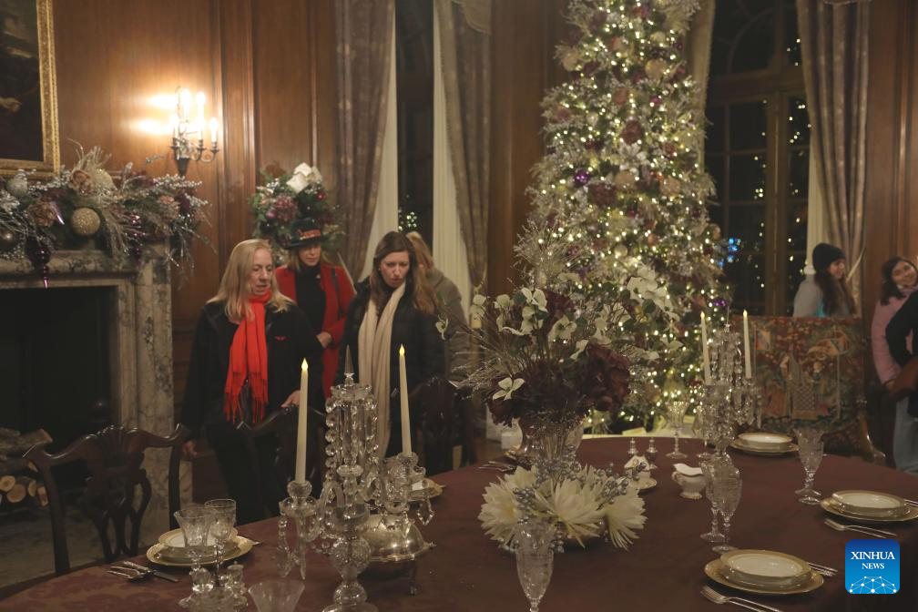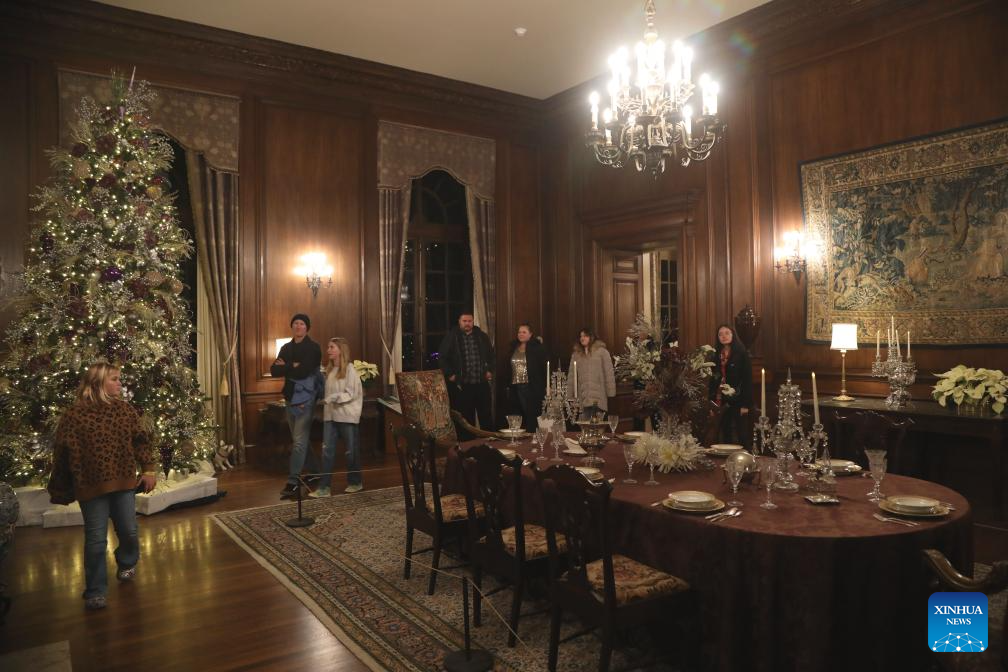People visit the Filoli Historic House & Garden in Woodside, California, the United States, Dec. 16, 2023. Illuminated decorations have been assembled at the Filoli Historic House & Garden to attract visitors with Christmas and New Year approaching. (Photo by Liu Yilin/Xinhua)