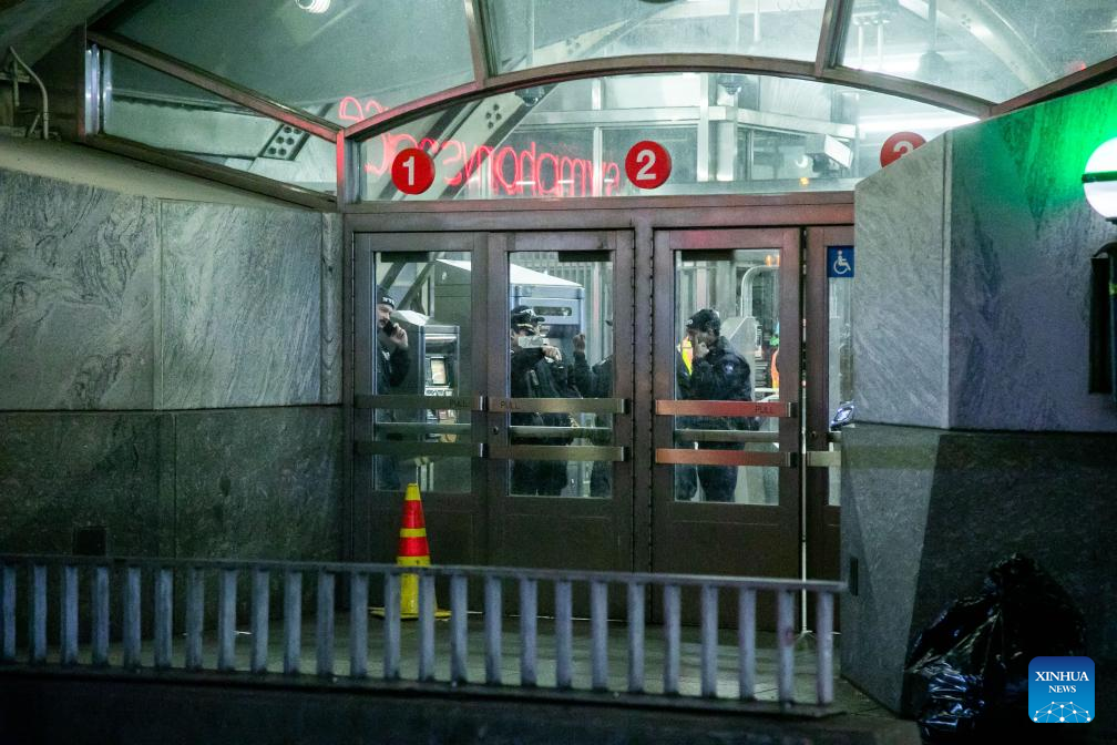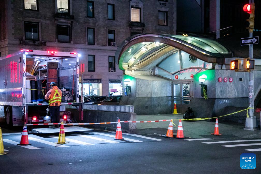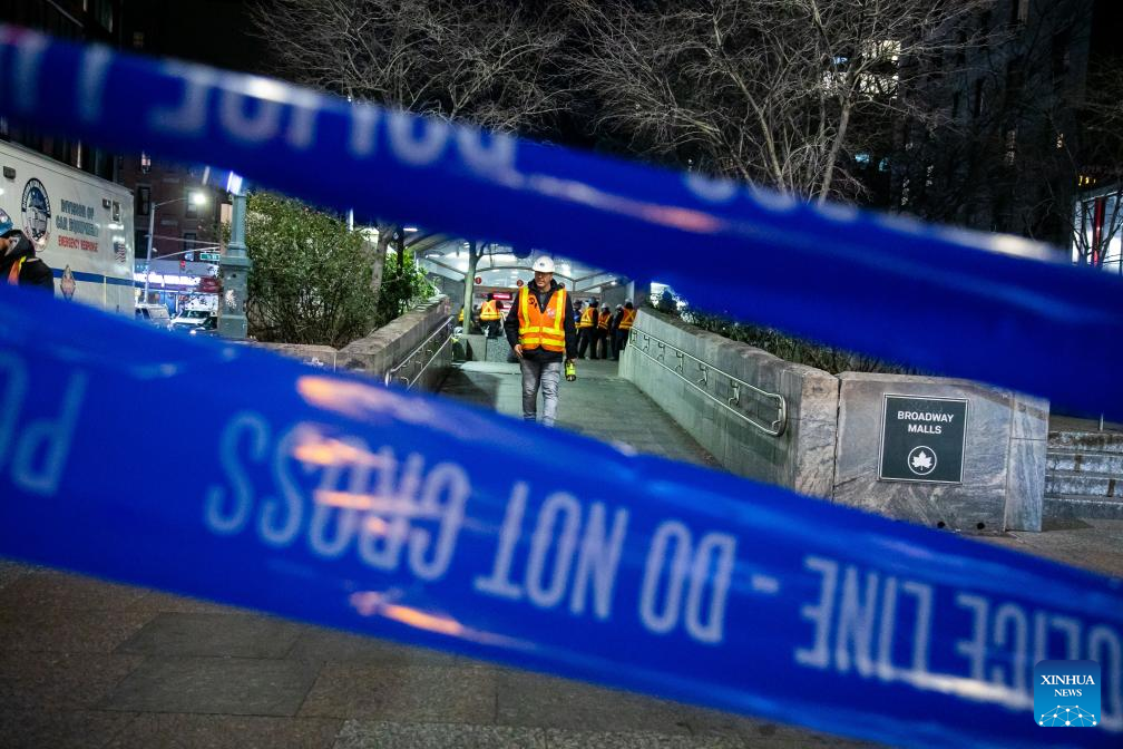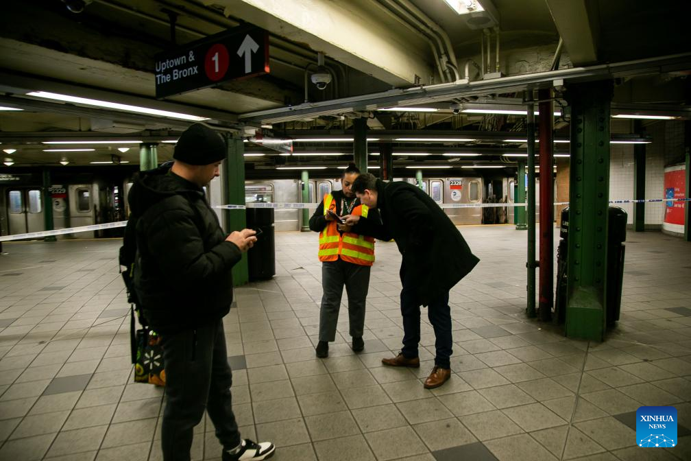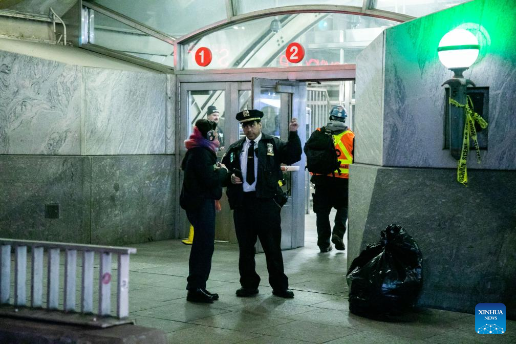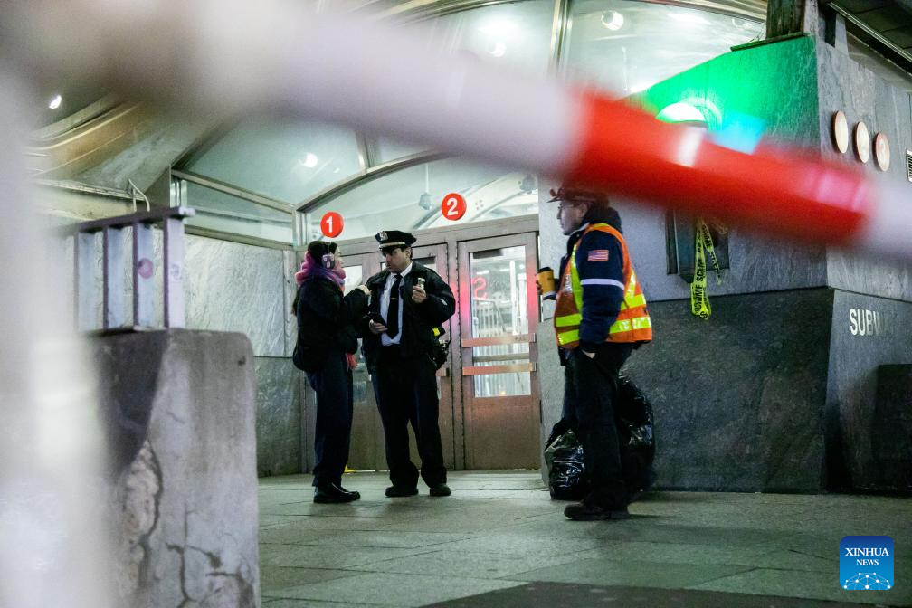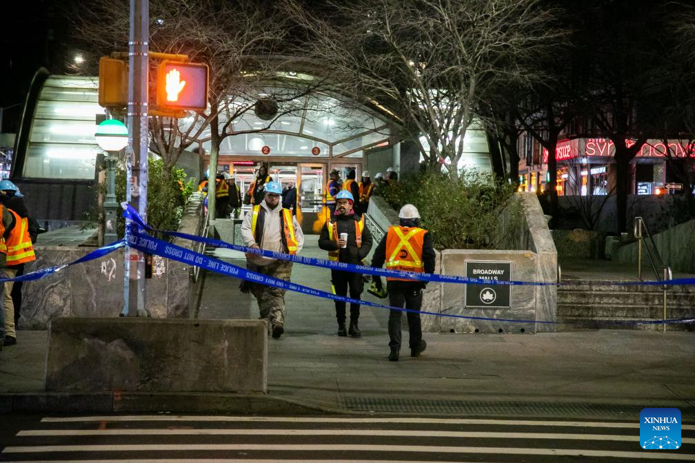Staff members respond to the collision of two subway trains at the 96th Street Station in New York, the United States, Jan. 4, 2024. Two subway trains collided on the Upper West Side of New York City on Thursday afternoon, resulting in derailment of one train and multiple injuries. (Photo by Michael Nagle/Xinhua)