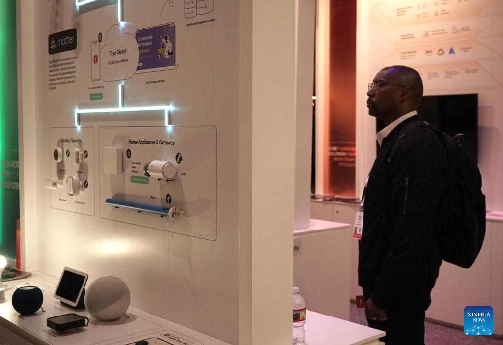 A man visits the exhibition area of Chinese company Tuya during the 2024 Consumer Electronics Show (CES) in Las Vegas, the United States, Jan. 11, 2024.