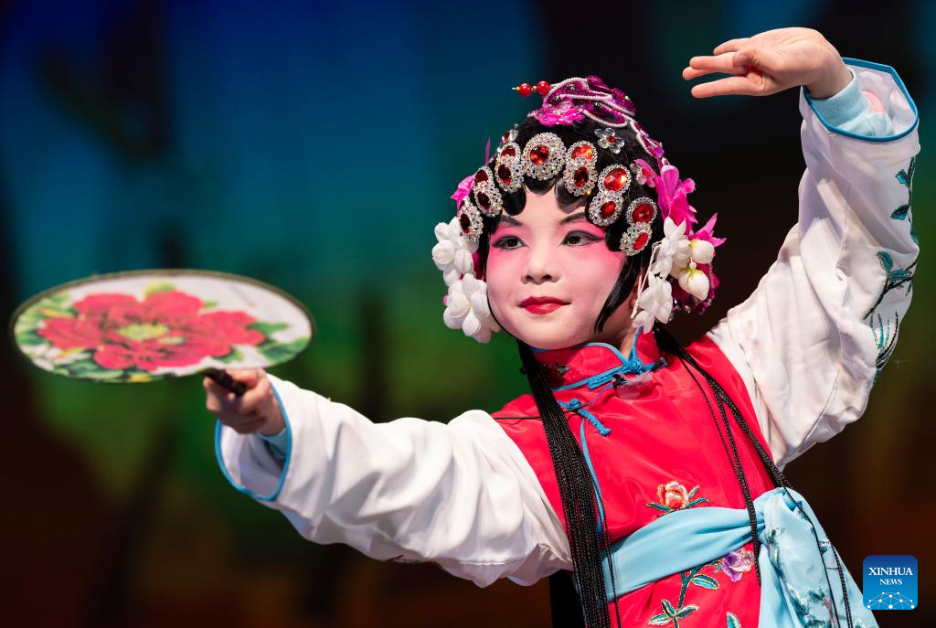A dressed-up girl performs during the 2024 Happy Spring Festival Chinese Opera New Year Gala in Richmond Hill, Ontario, Canada, on Jan. 21, 2024. Hosted by Canada Chinese Opera Arts Center, this event was held here on Sunday to celebrate the upcoming Chinese Lunar New Year of the Dragon. (Photo by Zou Zheng/Xinhua)