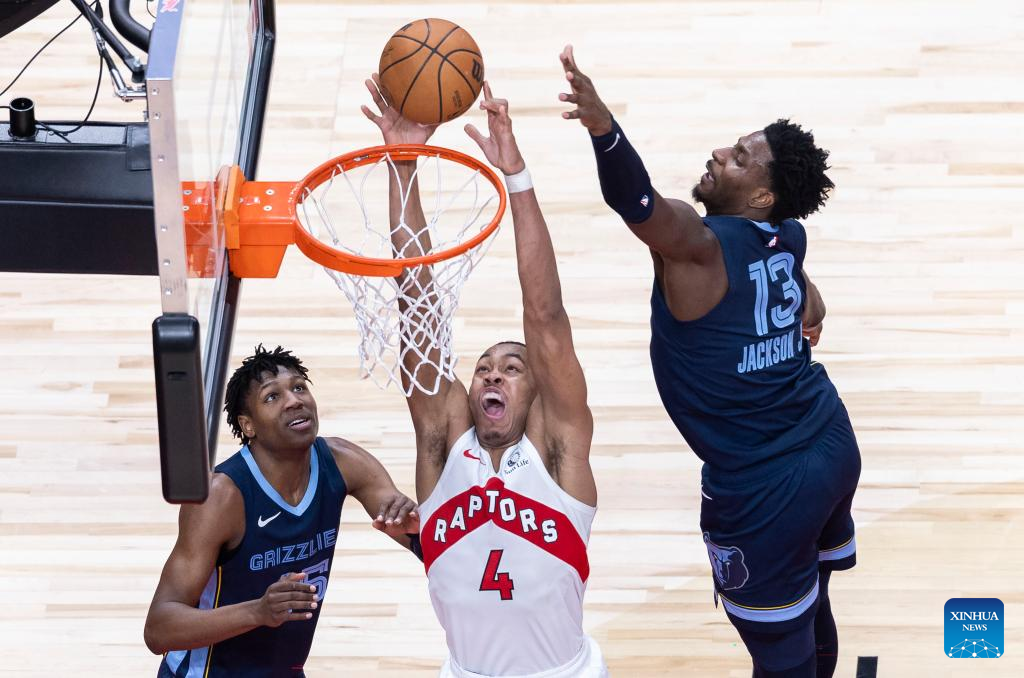 TORONTO, Jan. 22 (Xinhua) -- The Memphis Grizzlies big man Jaren Jackson Jr. scored a team-high 27 points and snatched a career-high six steals in his team's 108-100 victory over the Toronto Raptors on Monday night.