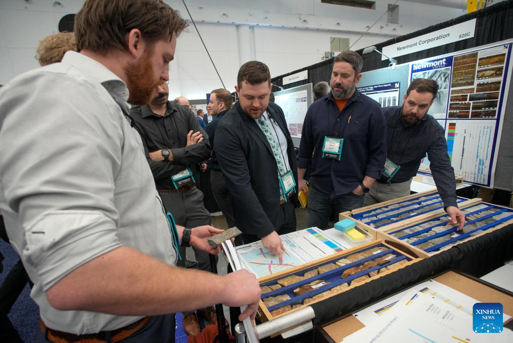 People attend a trade show of the Association for Mineral Exploration's Roundup 2024 in Vancouver, British Columbia, Canada, on Jan. 22, 2024. The Association for Mineral Exploration's Roundup event kicked off on Monday featuring a four-day trade show with key players in mineral exploration, development, mining and reclamation from around the world. (Photo by Liang Sen/Xinhua)