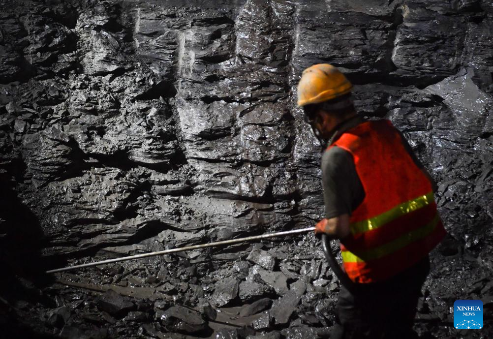 A worker of the China Railway 20th Bureau Group operates inside the Fuyi Tunnel of the Xi'an-Yan'an High-Speed Railway in Luochuan County of Yan'an City, northwest China's Shaanxi Province, Jan.16, 2024. Shaanxi Province has weathered several rounds of cold waves so far this winter, with temperatures plummeting to minus 26 degrees Celsius in Yan'an City, but constructors are still beating the adverse weather with normal operations at the construction site along the Xi'an-Yan'an High-Speed Railway.