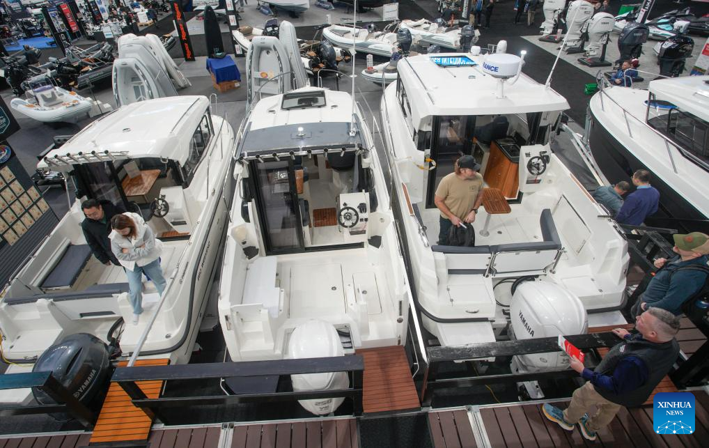 People visit the 2024 Vancouver International Boat Show in Vancouver, British Columbia, Canada, on Jan. 31, 2024. The Vancouver International Boat Show kicked off on Wednesday, featuring over 250 exhibitors from around the world and showcasing a wide selection of boats, accessories, and services. (Photo by Liang Sen/Xinhua)