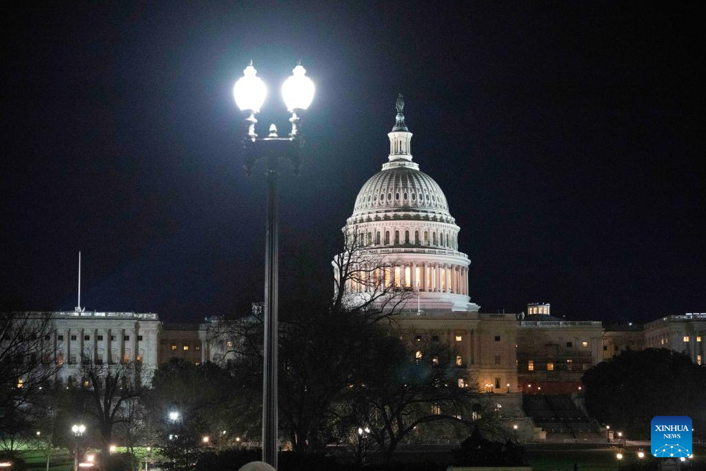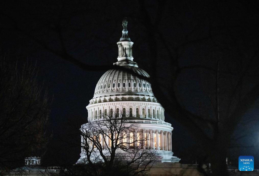 This photo taken on Feb. 13, 2024 shows the U.S. Capitol building in Washington, D.C., the United States. One week after a failed impeachment vote, the Republican-held U.S. House of Representatives on Tuesday voted to impeach Homeland Security Secretary Alejandro Mayorkas, making him the first cabinet member to be impeached in nearly 150 years. (Xinhua/Liu Jie)