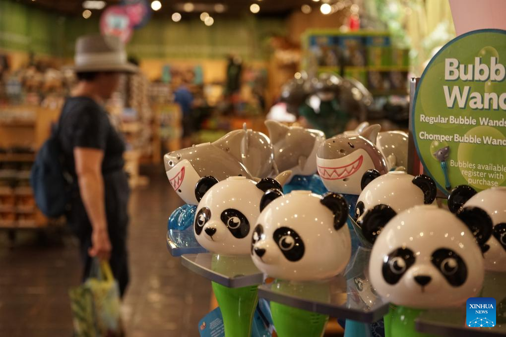 Giant panda-themed bubble wands are seen at a gift shop of the San Diego Zoo in San Diego, California, the United States, on Feb. 22, 2024. Panda lovers in the United States received a long-waited injection of hope after Chinese and U.S. wildlife conservation organizations signed a new round of agreement on giant panda conservation this week. (Photo by Zeng Hui/Xinhua)
