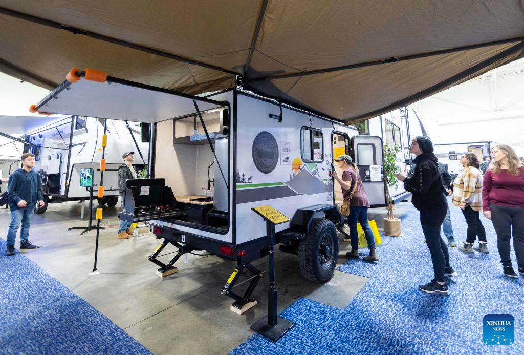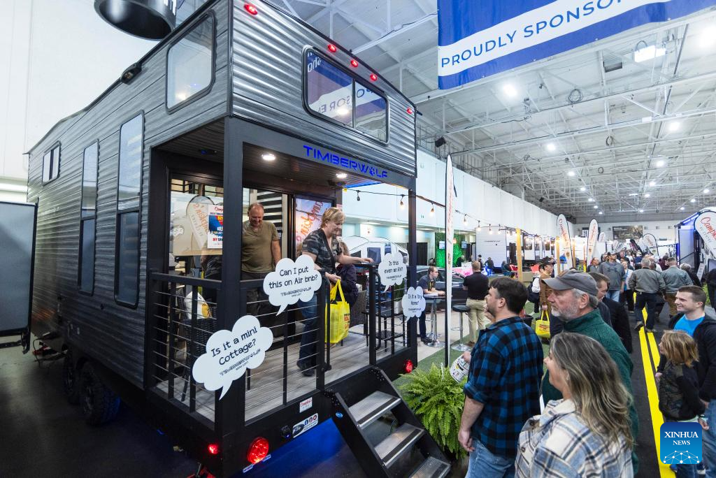 People visit the 2024 Toronto Spring Camping & RV Show in Mississauga, the Greater Toronto Area, Canada, on March 2, 2024. (Photo by Zou Zheng/Xinhua)