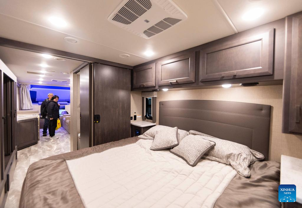 People tour a luxury RV during the 2024 Toronto Spring Camping & RV Show in Mississauga, the Greater Toronto Area, Canada, on March 2, 2024. (Photo by Zou Zheng/Xinhua)