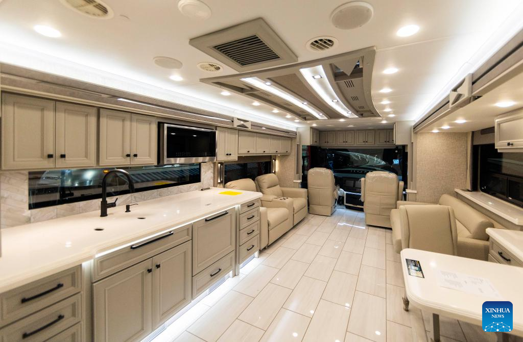 An inside view of a luxury RV is seen during the 2024 Toronto Spring Camping & RV Show in Mississauga, the Greater Toronto Area, Canada, on March 2, 2024. (Photo by Zou Zheng/Xinhua)
