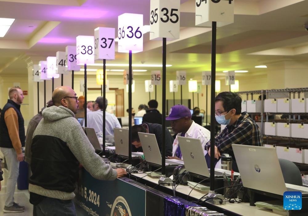 WASHINGTON, March 5 (Xinhua) -- Polls begin to open in more than a dozen U.S. states on the so-called "Super Tuesday" as part of the 2024 presidential primaries, with voters concerned about the leading candidates of both parties.