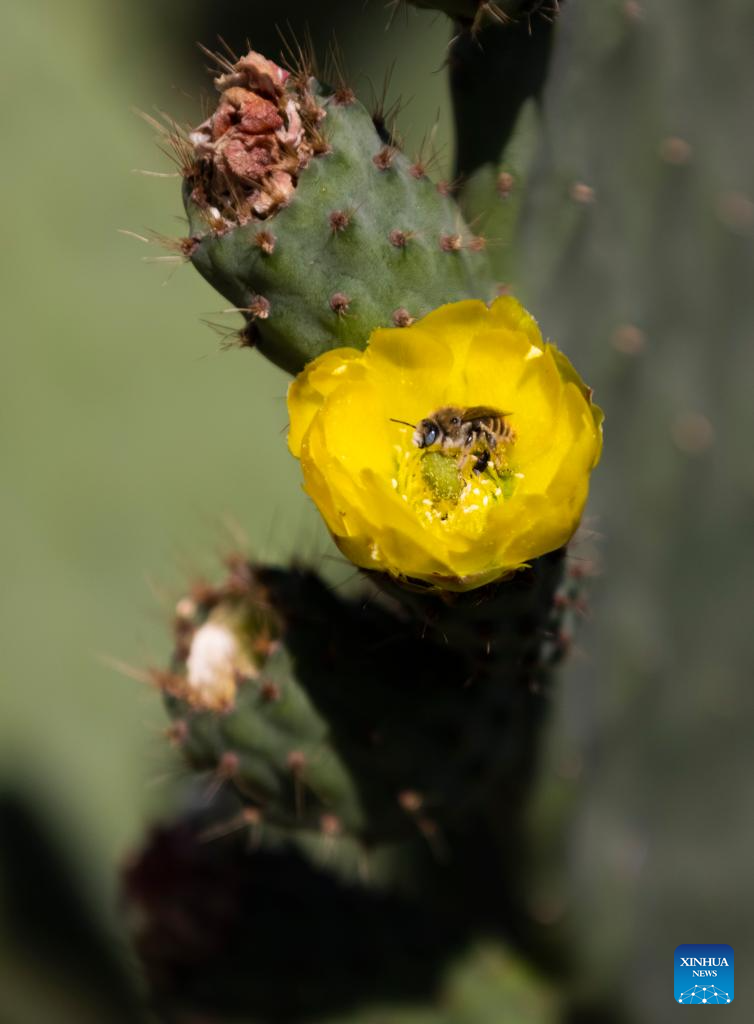This photo taken on March 11, 2024 shows cactus flowers in Tetelco, Mexico City, Mexico. (Xinhua/Li Mengxin)