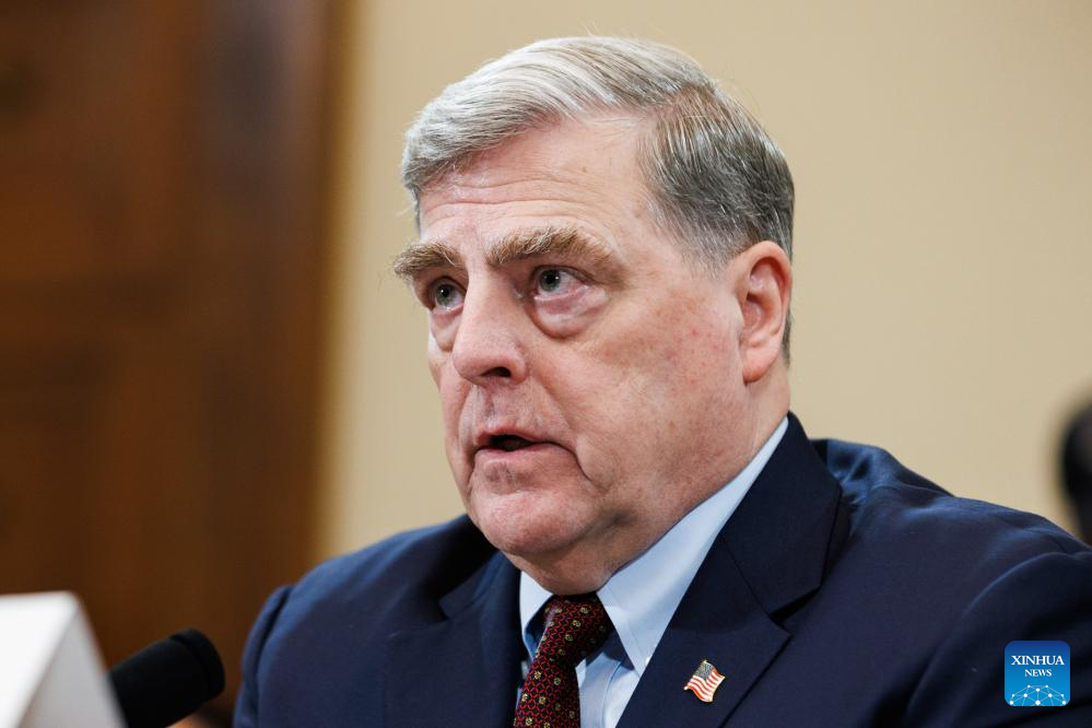 Retired U.S. General Mark Milley, former Chairman of the Joint Chiefs of Staff, testifies before the House Foreign Affairs Committee about the U.S. withdrawal from Afghanistan, in Washington, D.C., the United States, March 19, 2024. Two top U.S. generals who implemented President Joe Biden's plan to withdraw troops from Afghanistan testified at a House hearing Tuesday, as Republicans renewed their effort in an election year to hold the incumbent president accountable for the deadly evacuation. (Photo by Aaron Schwartz/Xinhua)