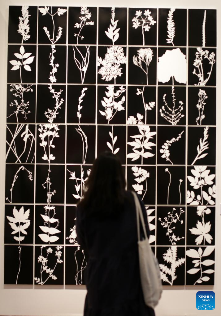 A woman visits the Atlas exhibition by artists Jan Hendrix of the Netherlands at the Citibanamex Culture Palace, in Mexico City, Mexico, on April 16, 2024. (Photo by Francisco Canedo/Xinhua)
