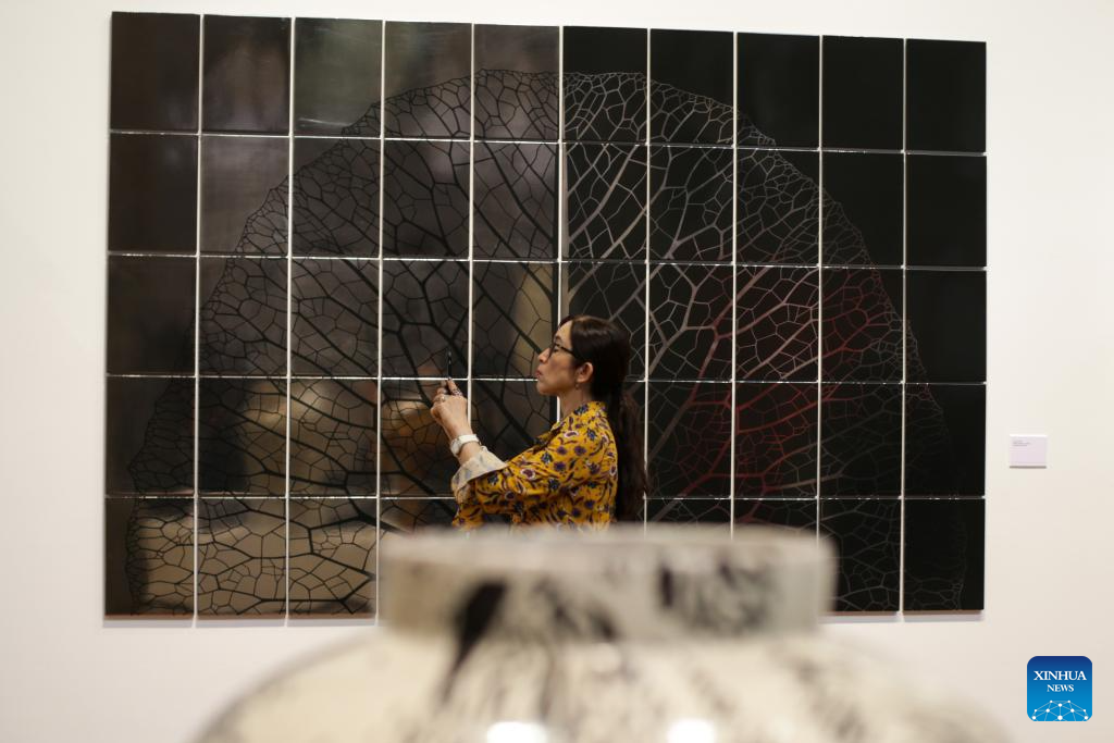 People visit the Atlas exhibition by artists Jan Hendrix of the Netherlands at the Citibanamex Culture Palace, in Mexico City, Mexico, April 16, 2024. (Photo by Francisco Canedo/Xinhua)