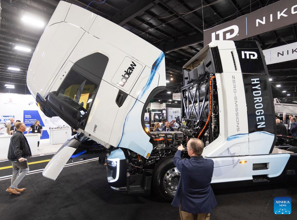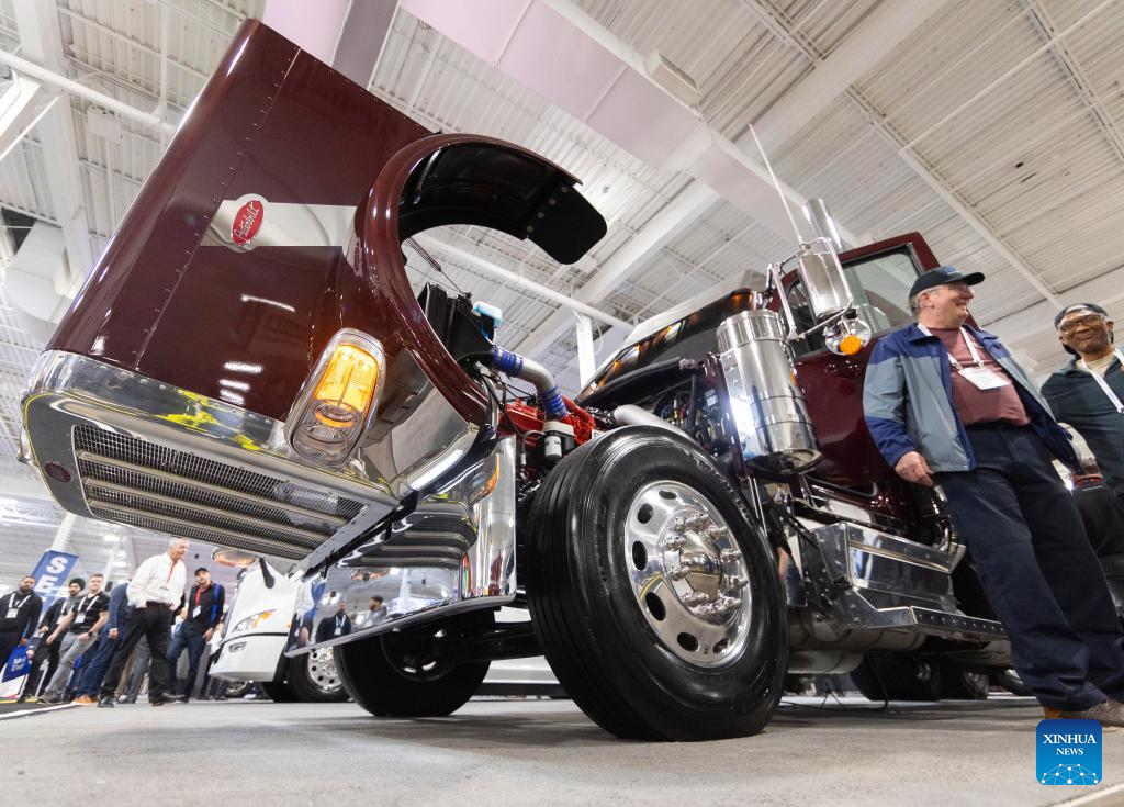 People visit the 2024 Truck World trade show in Mississauga, the Greater Toronto Area, Canada, on April 18, 2024. Providing a diverse range of products and services, the annual trade show is held here from April 18 to 20 with over 350 exhibitors. (Photo by Zou Zheng/Xinhua)