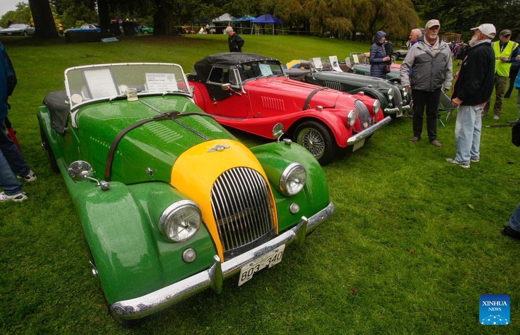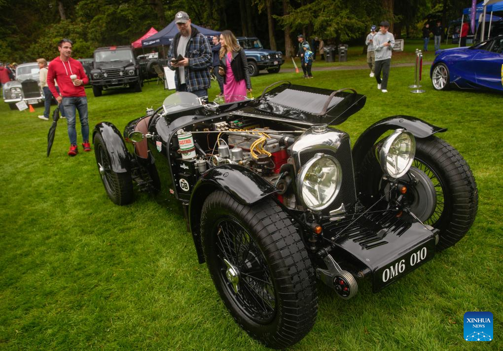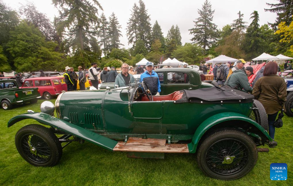 People visit the 37th Vancouver All British Field Meet classic car show at VanDusen Botanical Garden in Vancouver, British Columbia, Canada, on May 18, 2024. The event showcased more than 500 British classic cars, bringing together car owners and enthusiasts to share their stories. (Photo by Liang Sen/Xinhua)