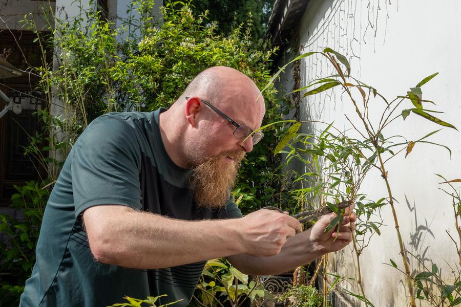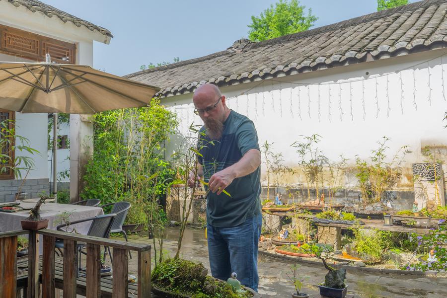 To delve deeper into the art of bonsai, Sinclair and his wife rented a small traditional courtyard in Chongzhou, one of the birthplaces of traditional Sichuan bonsai, and named it "White Bear Bonsai Garden."
