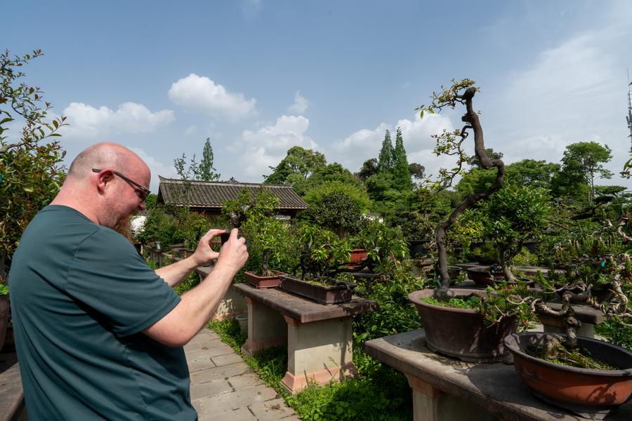CHENGDU, May 19 (Xinhua) -- Hailing from Vancouver in Canada, Chad Sinclair, 46, has lived in China for over 20 years and is deeply fond of Sichuan bonsai, one of the major traditional bonsai schools in China.