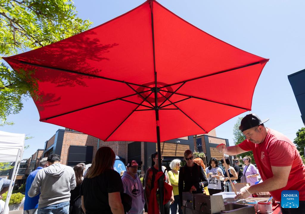A cook prepares a beaver tail at the Food Truck Friday, an event to raise awareness and inclusion for people with developmental disabilities, in Oakville, Ontario, Canada, on May 31, 2024. (Photo by Zou Zheng/Xinhua)