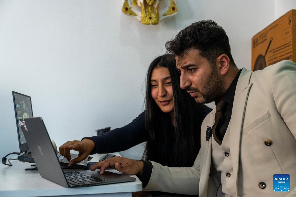 Iraqi food vlogger Ahmed Mohammed Jaber talks with his sister Aya about social media content performance in Chengdu, southwest China's Sichuan Province, May 28, 2024. Dressed in a smart suit, Ahmed Mohammed Jaber talks to the camera in Mandarin with an accent, commencing his latest food tasting vlog. Ahmed, also known by the Chinese name Wang Lixuan, hails from Iraq though it is the food vlogger's tenth year in China. (Xinhua/Xue Chen)