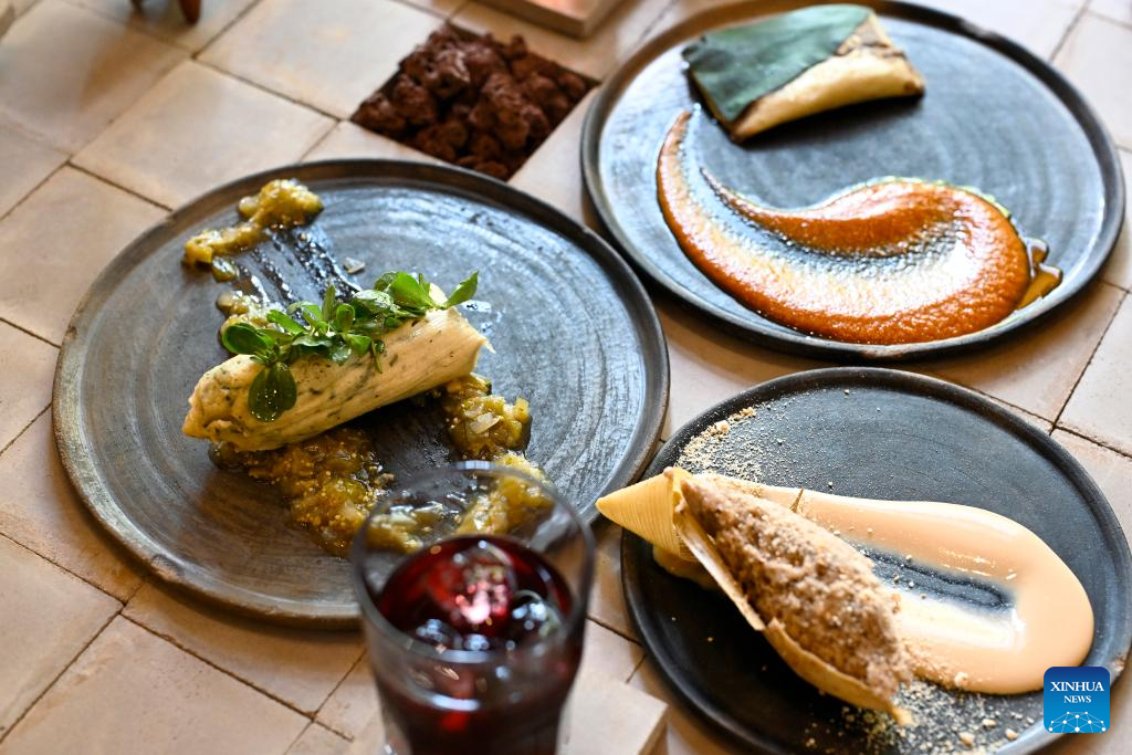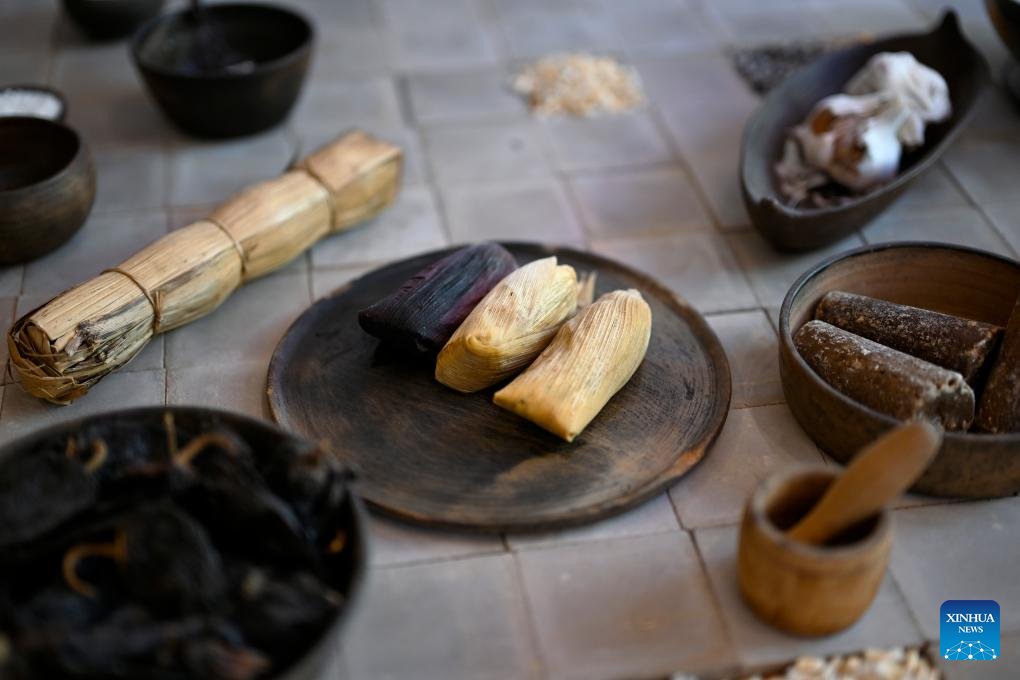 Tamales of different flavors are pictured at Tamales Madre restaurant in Mexico City, Mexico, June 8, 2024. Tamales is a popular delicacy in Mexico. Like many other food in Mexico, the tamales traces its origins to hundreds of years ago, well before the arrival of the Spanish. Mexico's indigenous communities relished this dietary staple, made of cornmeal stuffed with meats and sauces, wrapped and steamed in corn husks or banana leaves. (Xinhua/Li Muzi)