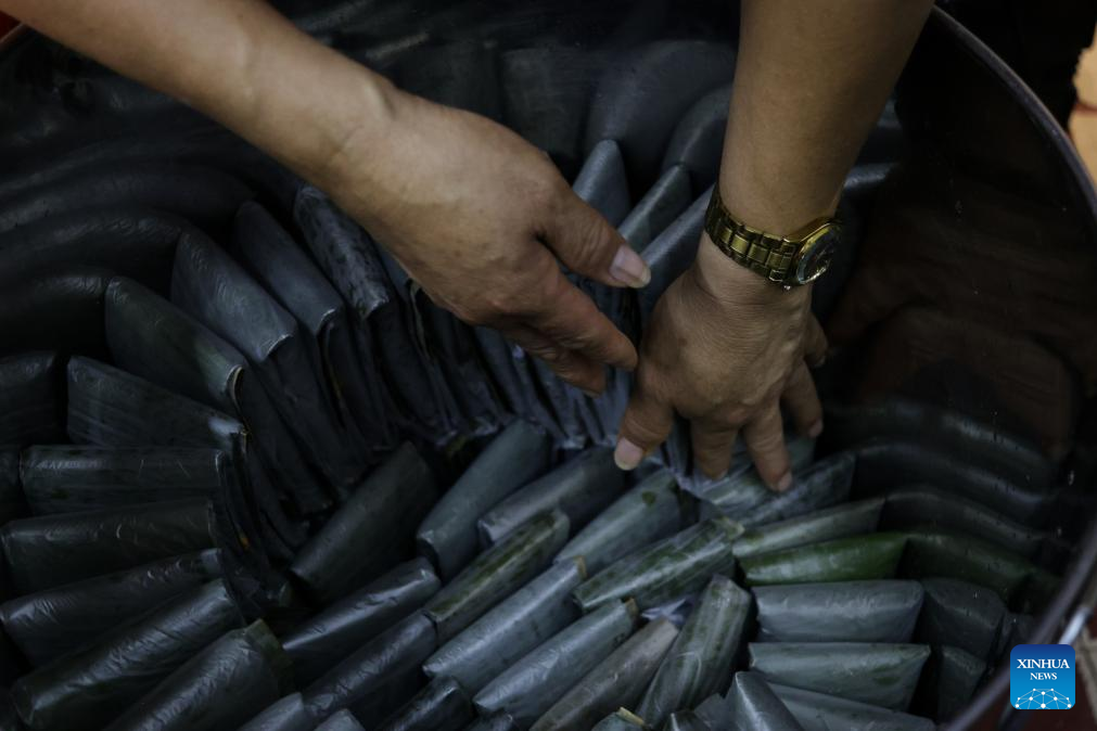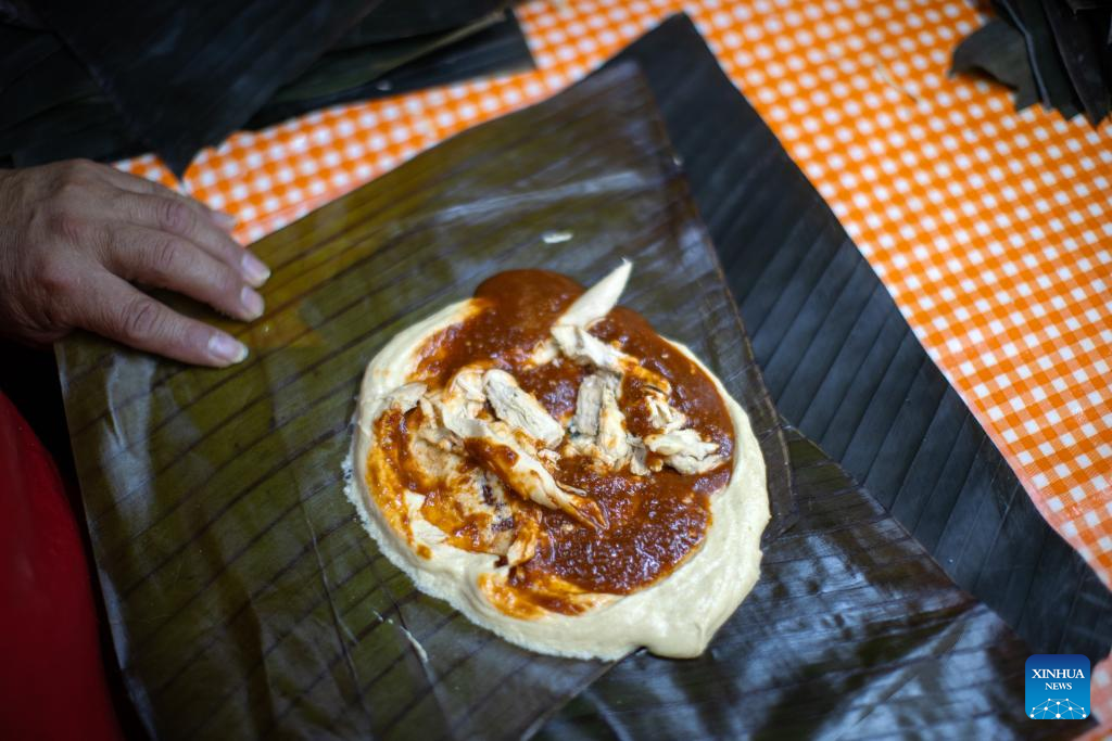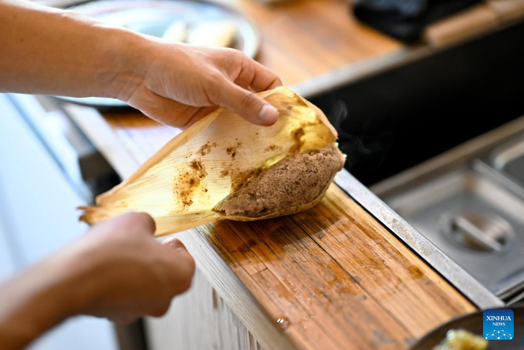 A staff member prepares tamales at Tamales Madre restaurant in Mexico City, Mexico, June 8, 2024. Tamales is a popular delicacy in Mexico. Like many other food in Mexico, the tamales traces its origins to hundreds of years ago, well before the arrival of the Spanish. Mexico's indigenous communities relished this dietary staple, made of cornmeal stuffed with meats and sauces, wrapped and steamed in corn husks or banana leaves. (Xinhua/Li Muzi)