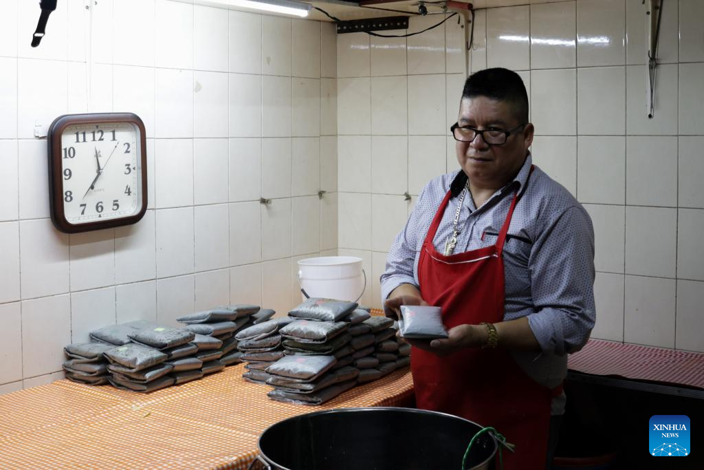 Chef Quirino Tolentino Castro makes Tamales Oaxaquenos at Tamales Tata restaurant in Mexico City, Mexico, June 6, 2024. Tamales is a popular delicacy in Mexico. Like many other food in Mexico, the tamales traces its origins to hundreds of years ago, well before the arrival of the Spanish. Mexico's indigenous communities relished this dietary staple, made of cornmeal stuffed with meats and sauces, wrapped and steamed in corn husks or banana leaves. (Xinhua/Li Muzi)
