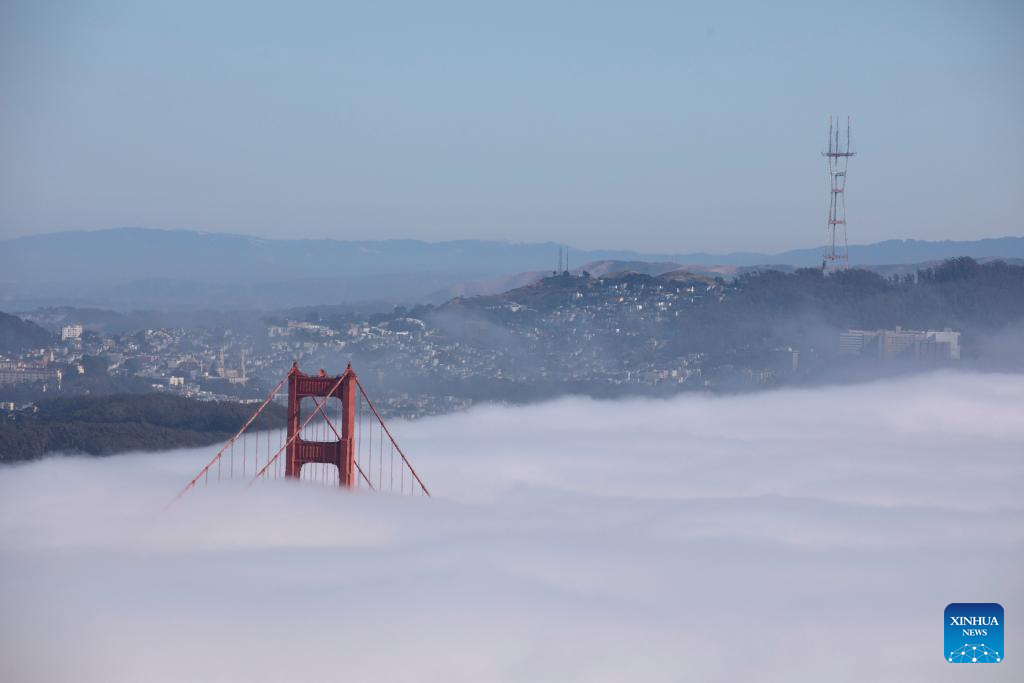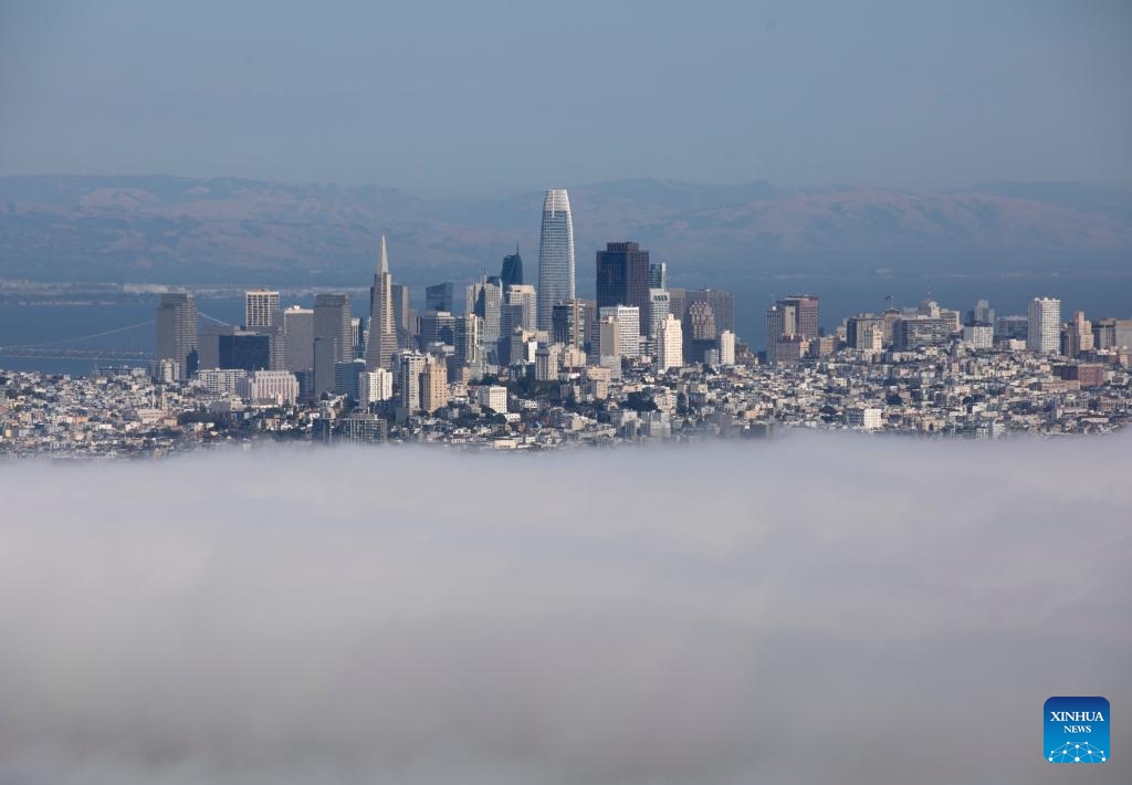 This photo taken on June 22, 2024 shows a view of clouds in San Francisco, the United States. (Photo by Li Jianguo/Xinhua)