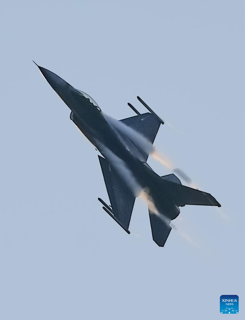 A U.S. Air Force F-16 Fighting Falcon airplane performs during the 2024 Abbotsford International Airshow in Abbotsford, Canada, Aug. 9, 2024.