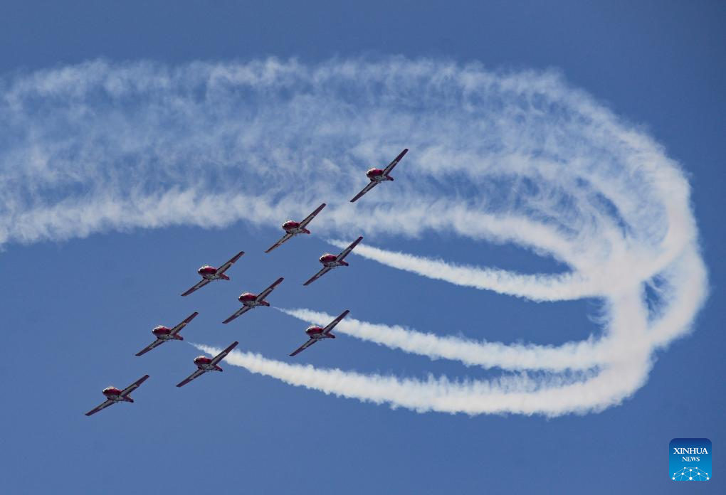 The Canadian Forces Snowbirds performs during the 2024 Abbotsford International Airshow in Abbotsford, Canada, Aug. 9, 2024.