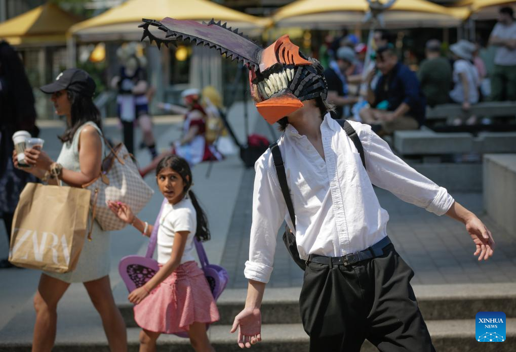 Cosplayers pose for photos during Anime Revolution convention at the Vancouver Convention Centre in Vancouver, British Columbia, Canada, Aug. 10, 2024. Anime Revolution is an annual anime convention in Western Canada, attracting over ten thousand cosplayers and anime fans to its three-day event. (Photo by Liang Sen/Xinhua)