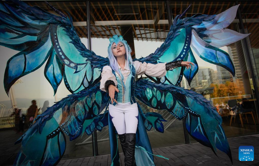 A cosplayer poses for photos during Anime Revolution convention at the Vancouver Convention Centre in Vancouver, British Columbia, Canada, Aug. 10, 2024. Anime Revolution is an annual anime convention in Western Canada, attracting over ten thousand cosplayers and anime fans to its three-day event. (Photo by Liang Sen/Xinhua)