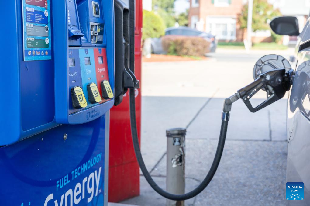 A vehicle gets refueled at a gas station in Arlington, Virginia, the United States, Aug. 14, 2024. U.S. consumer inflation in July increased 2.9 percent from a year ago, after climbing 3.0 percent in June and 3.3 percent in May, the U.S. Labor Department reported Wednesday. (Xinhua/Hu Yousong)
