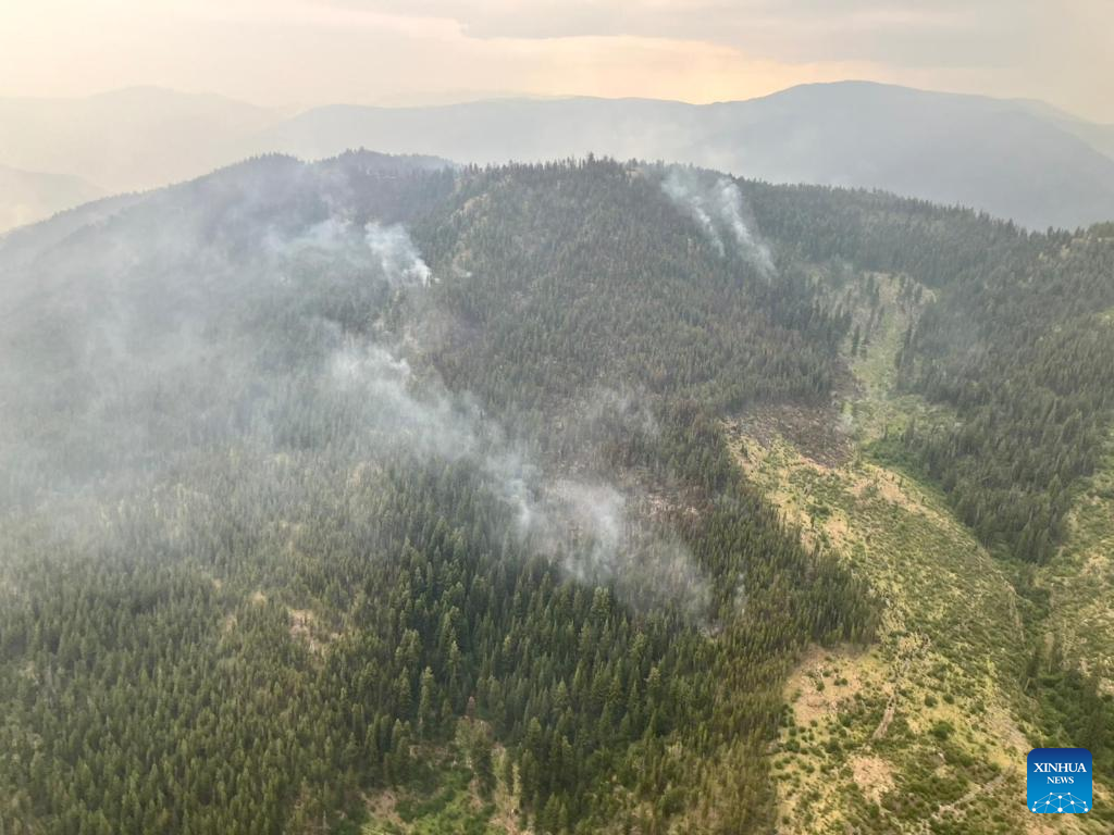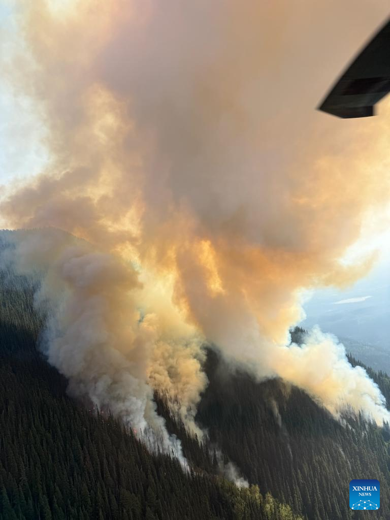 Aerial photo provided by BC Wildfire Service shows a wildfire near Upper Elaho River, southwestern British Columbia, Canada, on Aug. 16, 2024. Until Aug. 19, there are 375 active wildfires burning, with 127 out of control, across British Columbia in Canada, according to the BC Wildfire Service. (BC Wildfire Service/Handout via Xinhua)