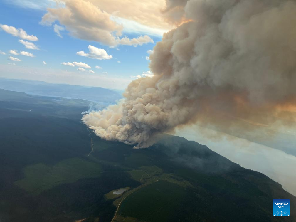 Aerial photo provided by BC Wildfire Service shows a wildfire near Deep Creek, northwest British Columbia, Canada, on Aug. 18, 2024. Until Aug. 19, there are 375 active wildfires burning, with 127 out of control, across British Columbia in Canada, according to the BC Wildfire Service. (BC Wildfire Service/Handout via Xinhua)