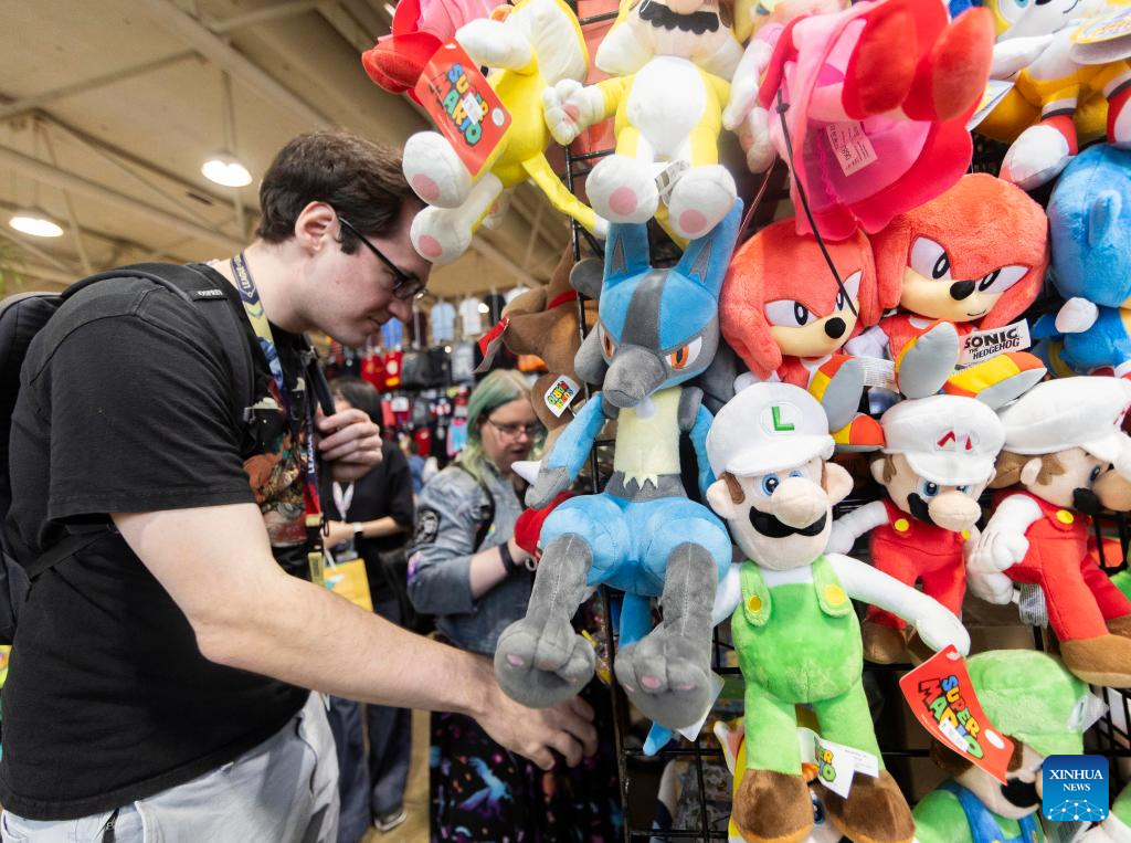 A man selects toys during the 2024 Fan Expo Canada in Toronto, Canada, on Aug. 23, 2024. As one of the largest comics, sci-fi, anime and gaming events in Canada, the annual show is held here from Aug. 22 to Aug. 25, attracting hundreds of thousands of fans from across the world. (Photo by Zou Zheng/Xinhua)