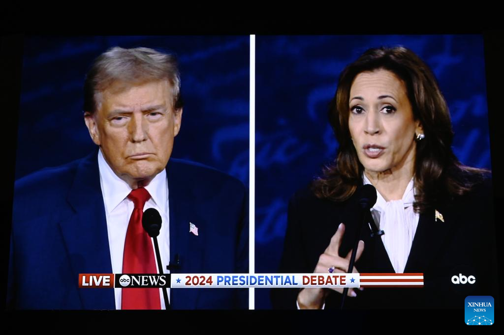 Harris and Trump on Tuesday night faced off here for the first time in the 2024 U.S. presidential debate. (Xinhua/Li Rui)