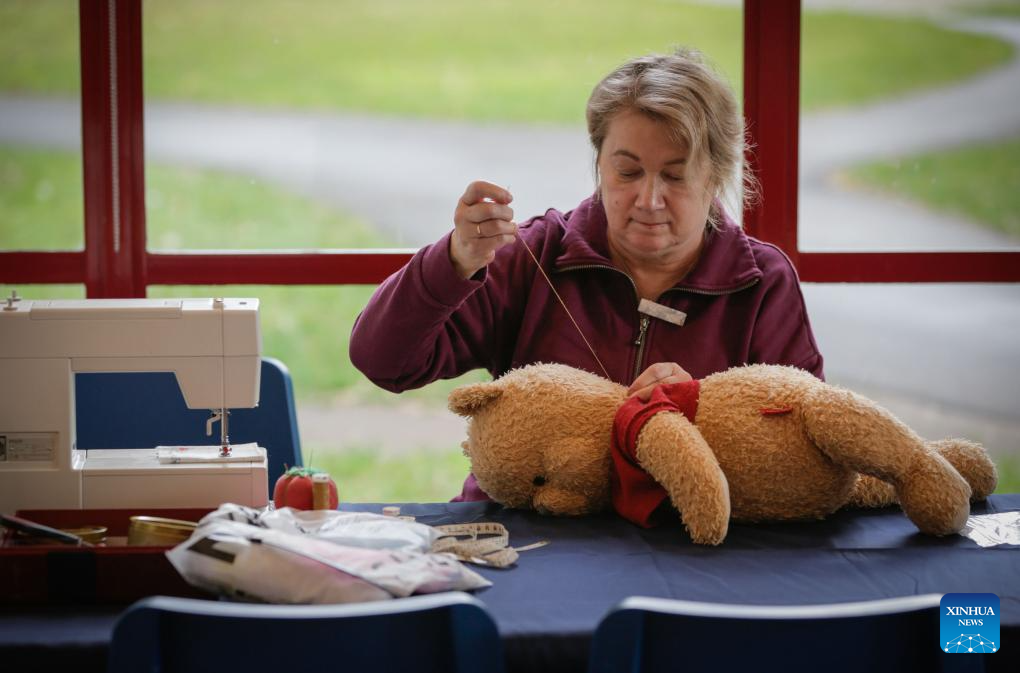 A "doll doctor" restores a damaged stuffed doll during the Teddy Bear Repair Fair in Richmond, British Columbia, Canada, Sept. 21, 2024.