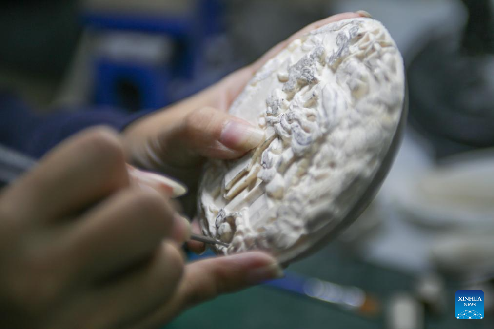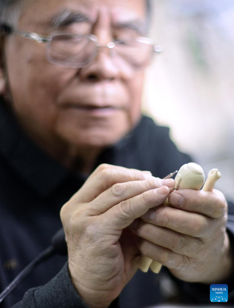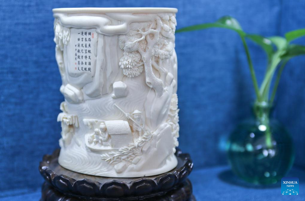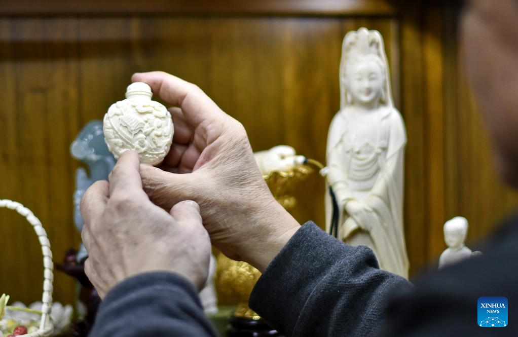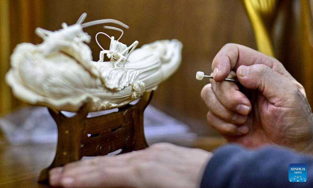 In recent years, Li passes down the craft at Chinese National Academy of Arts, Beijing Institute of Fashion Technology and Beijing Light Industry Polytechnic College. He has cultivated over 20 students with master's degrees in arts and crafts and over 100 apprentices on ivory carving. He has also presided over the maintaining and repairing projects on 100 plus ancient ivory carving artworks at the Beijing Arts & Crafts Museum. For him, the art should lay importance to its subtle beauty inherited from the traditional Chinese culture. To further develop it, China needs more young talents and should explore new carving materials. (Xinhua/Zhu Weixi)