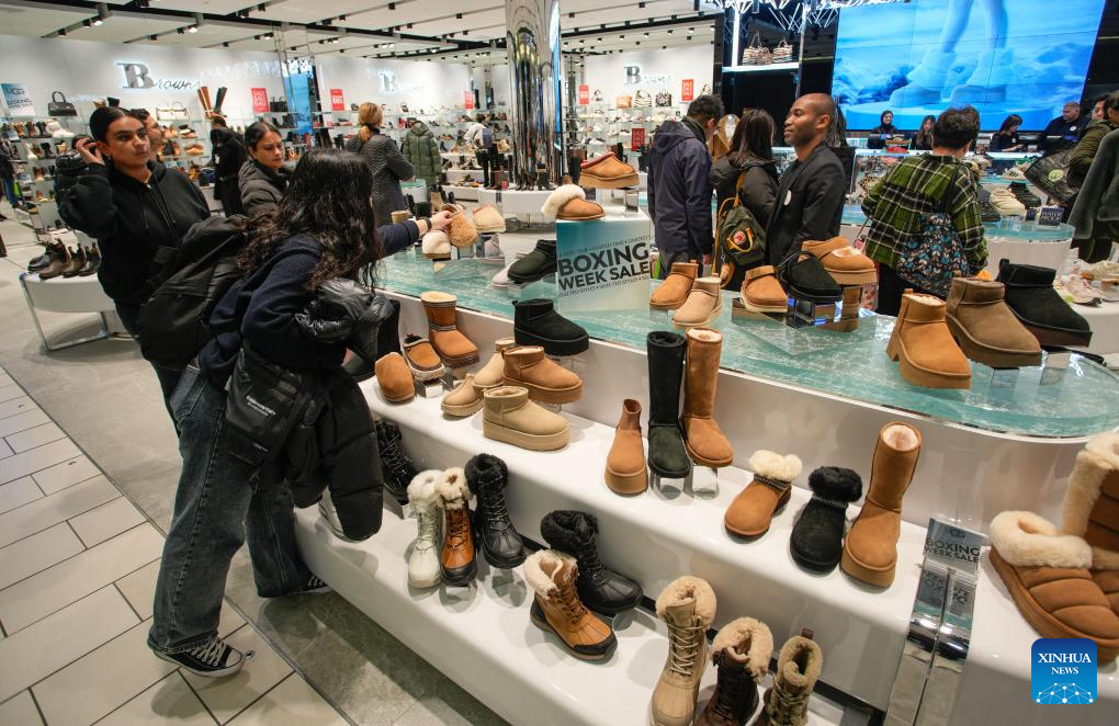 Customers shop at a store during the Boxing Day sale in Vancouver, British Columbia, Canada, on Dec. 26, 2024. (Photo by Liang Sen/Xinhua)