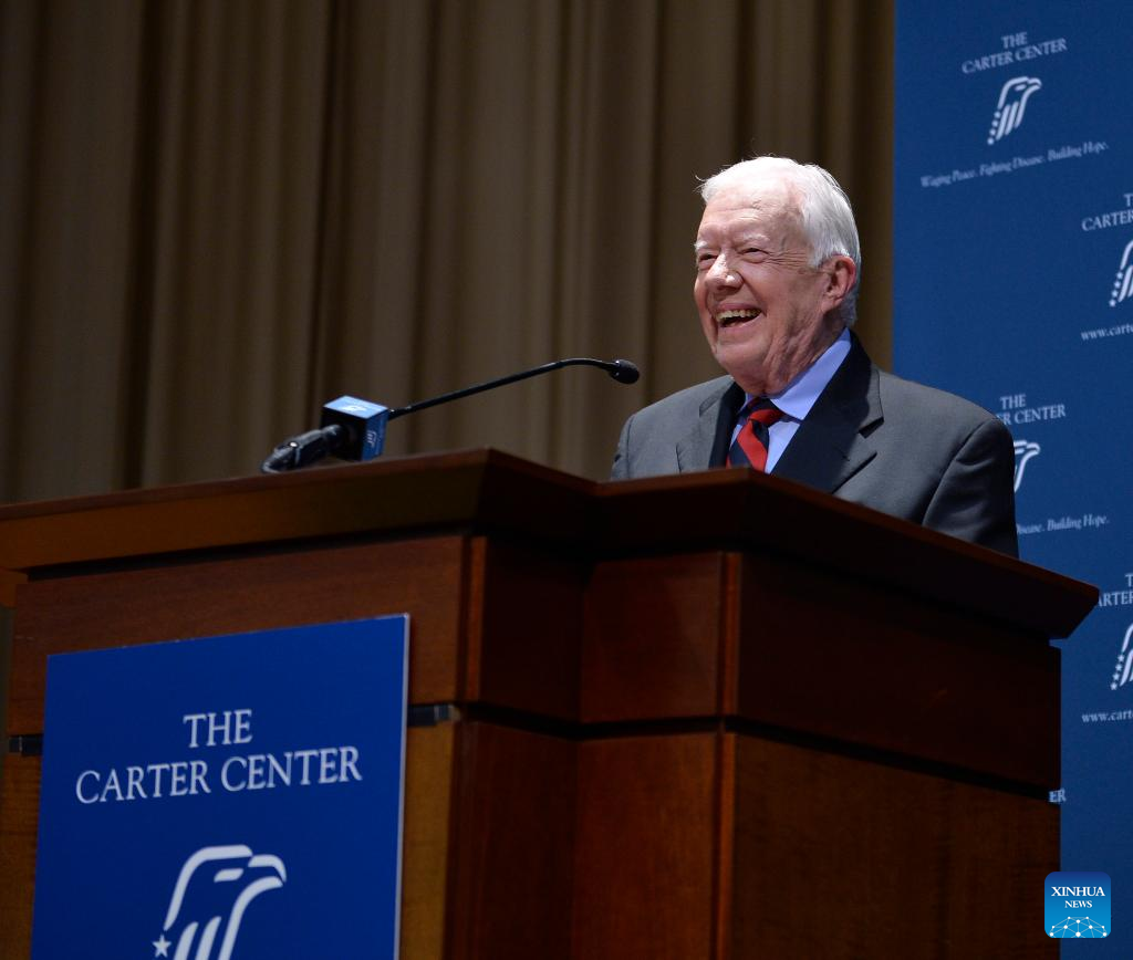 This file photo shows former U.S. President Jimmy Carter attending an event at the Carter Center in Atlanta, the United States, July 17, 2014. Former U.S. President Jimmy Carter died at 100 at his home in Plains, southern U.S. state of Georgia, on Sunday, his son Chip Carter confirmed. (Xinhua/Bao Dandan)