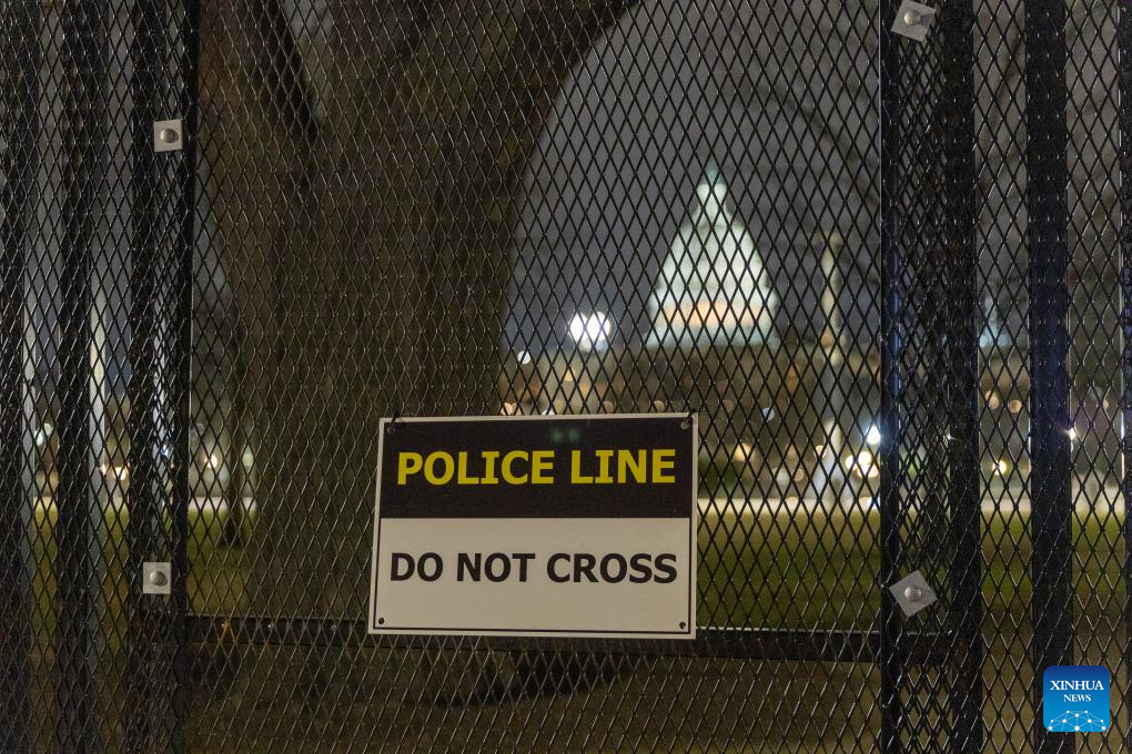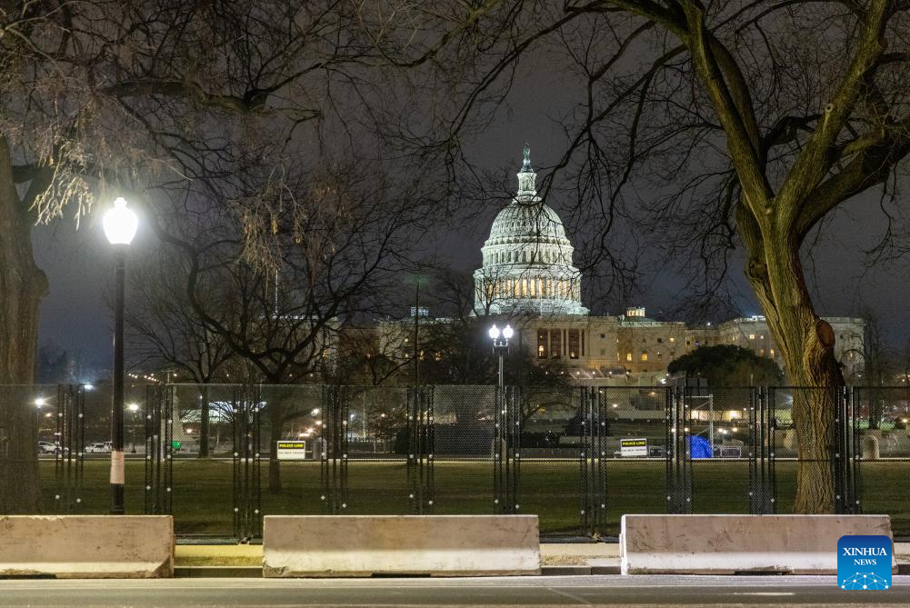 This photo taken on Jan. 5, 2025 shows the U.S. Capitol building encircled by security fencing in Washington, D.C., the United States. After the 2020 U.S. presidential election, then-President Donald Trump, a Republican, refused to concede to his Democratic opponent Joe Biden and repeatedly claimed that there was widespread election fraud. On Jan. 6, 2021, thousands of Trump supporters violently broke into the Capitol building, and interrupted the certifying process of the 2020 presidential election, prompting hundreds of lawmakers to evacuate in panic. (Xinhua/Hu Yousong)