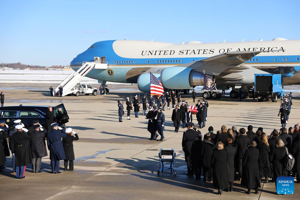 WASHINGTON, Jan. 7 (Xinhua) -- The body of former U.S. President Jimmy Carter, who recently passed away at the age of 100, arrived in Washington, D.C. on Tuesday.