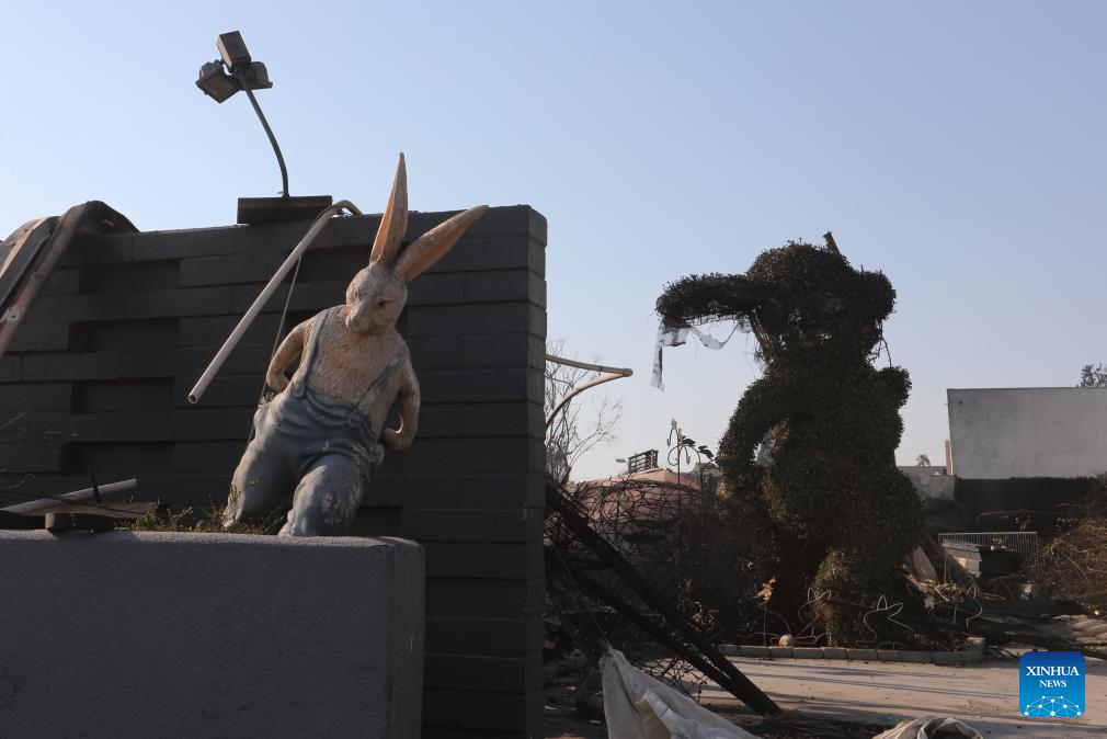 The well-known Bunny Museum, destroyed by the fire, is seen in Altadena, Los Angeles County, California, the United States, on Jan. 10, 2025. Devastating wildfires continue to rage across different parts of Los Angeles County on Friday, leading to widespread disruptions, including school closures and the cancellation of entertainment, sports, and community events.