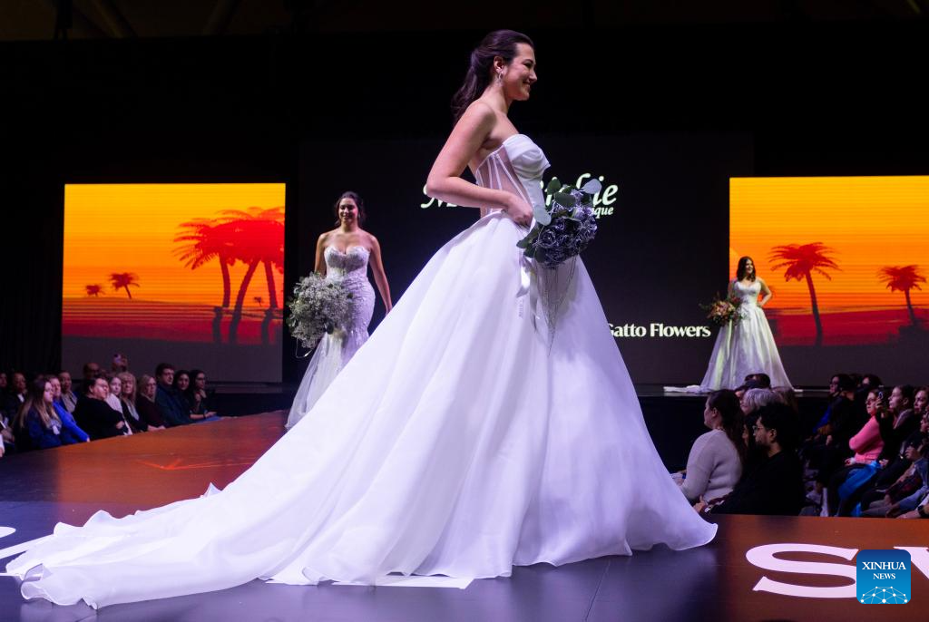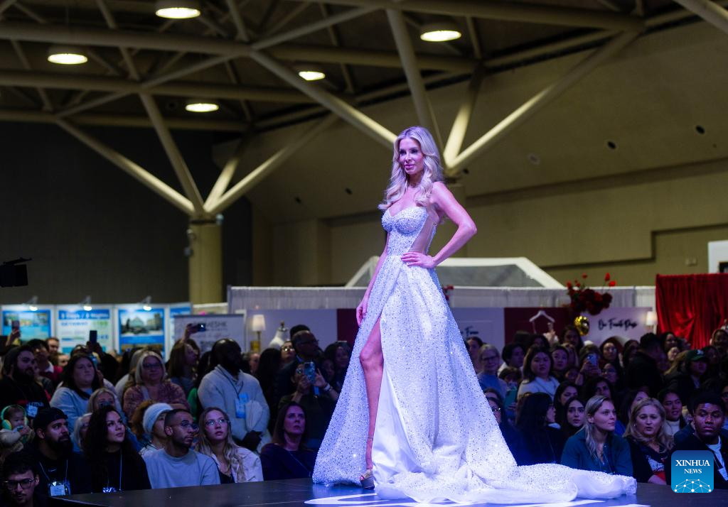Models present wedding dresses during the 2025 Canada's Bridal Show in Toronto, Canada, on Jan. 11, 2025. Showcasing the latest trends in bridal fashion, this annual event lasts from Jan. 10 to 12. (Photo by Zou Zheng/Xinhua)