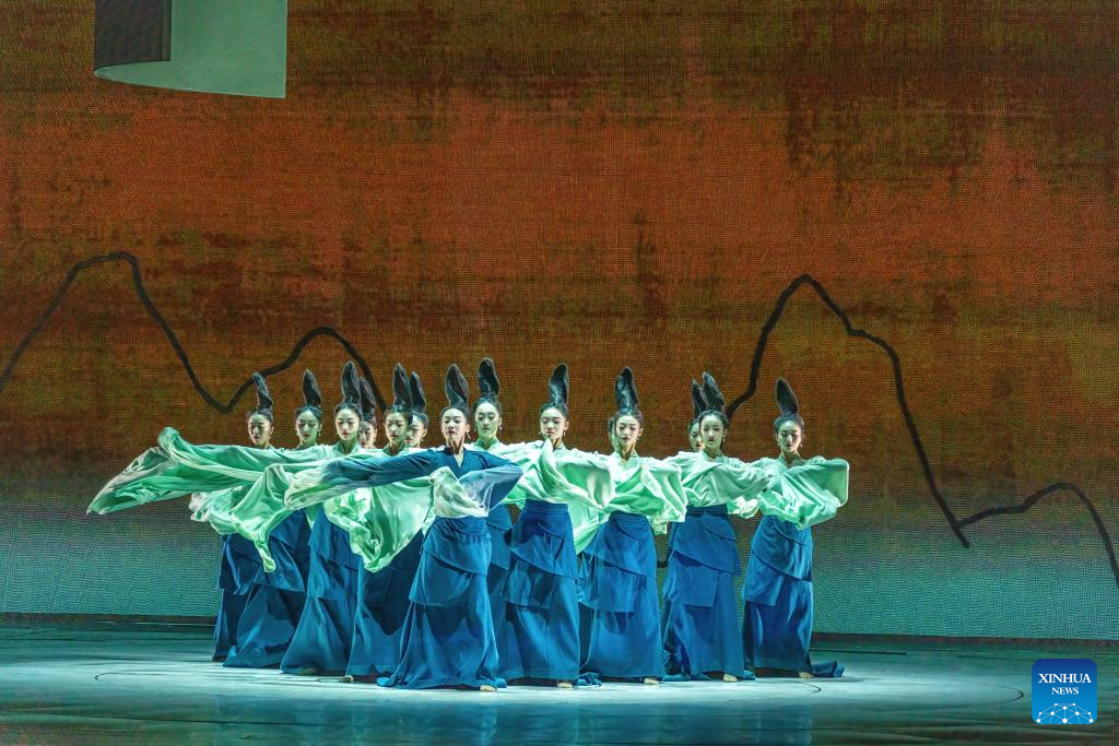 Chinese dancers perform The Journey of a Legendary Landscape Painting, a poetic dance drama, at the David H. Koch Theater at Lincoln Center in New York, the United States, on Jan. 10, 2025. (Photo by Winston Zhou/Xinhua)