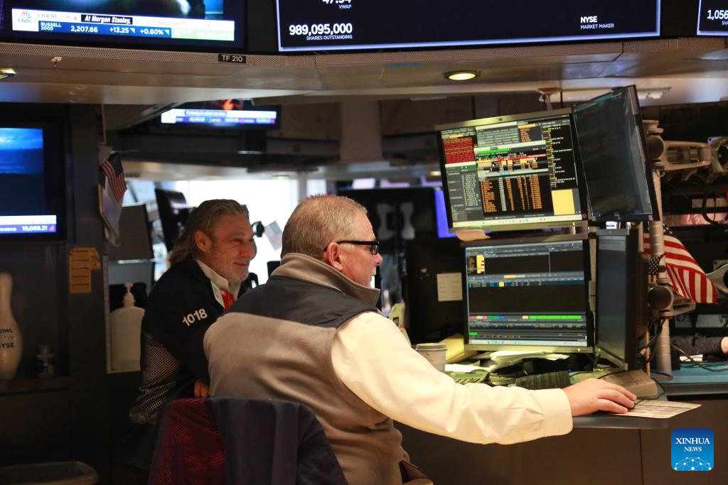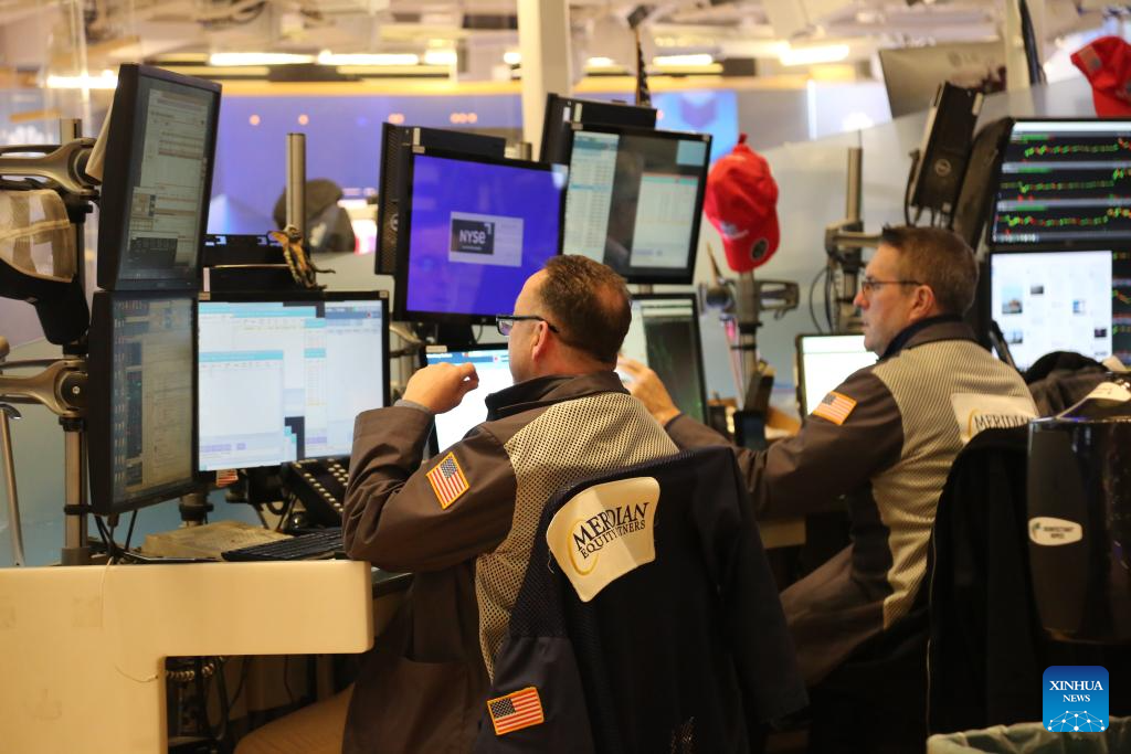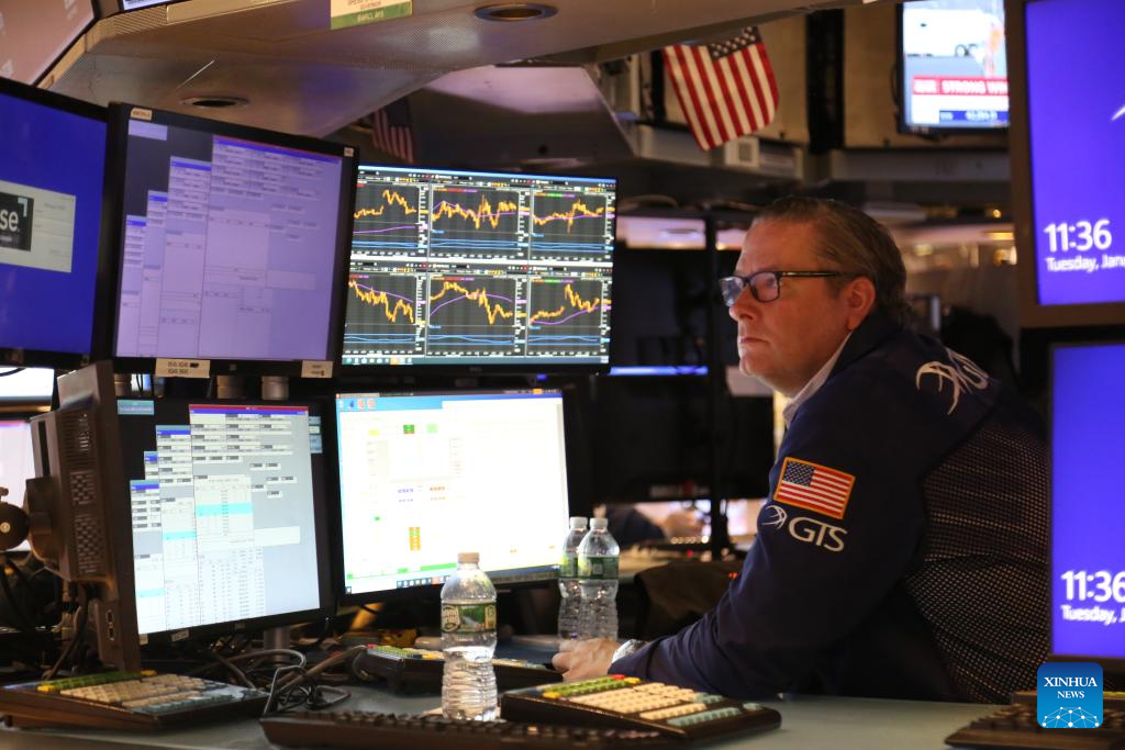 Traders work on the floor of New York Stock Exchange in New York, the United States, on Jan. 14, 2025. U.S. stocks ended mixed on Tuesday. The Dow Jones Industrial Average rose 221.16 points, or 0.52 percent, to 42,518.28. The S&P 500 added 6.69 points, or 0.11 percent, to 5,842.91. The Nasdaq Composite Index shed 43.71 points, or 0.23 percent, to 19,044.39. (Xinhua/Liu Yanan)